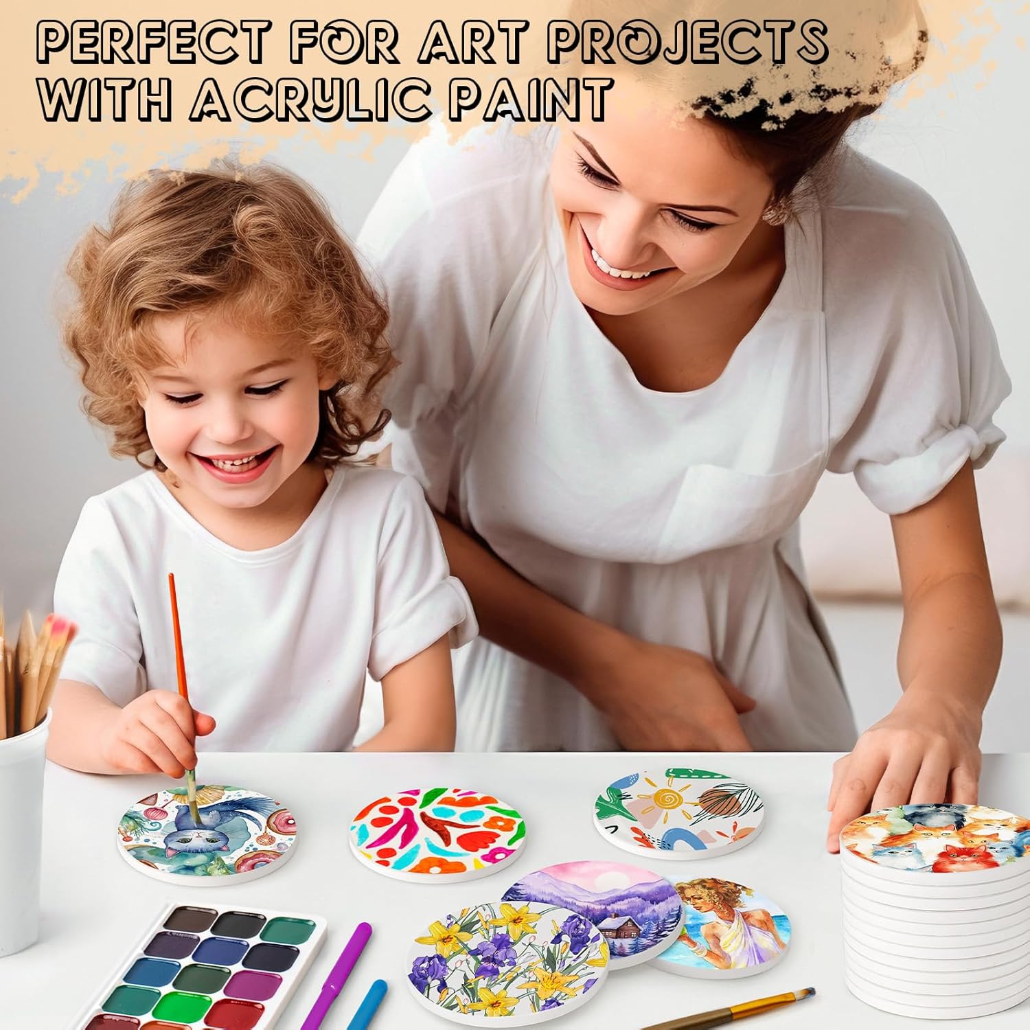 Ceramic Tiles for Crafts, GOH DODD 24 Pack Unglazed Blank Coasters with Cork Backing for Alcohol Ink Painting Acrylic Pouring Art Projects Housewarming Gifts Wedding School Education, Round, 4 Inch