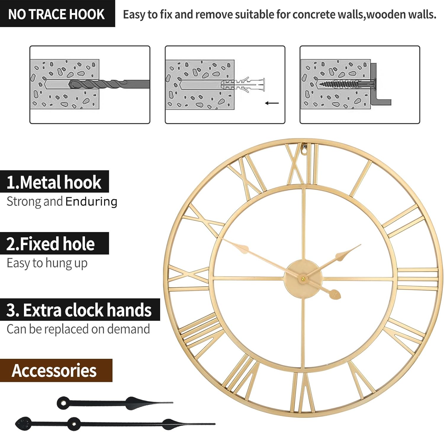 - 【Vintage and Retro Design】 - Not just for telling time, large wall clocks are perfect for adding artful appeal to your wall. Suitable for bedroom, school, office, living room, kitchen or commercial applications. Perfect for decorating any home decoration style. Make this oversized metal clock the focal point of any room!