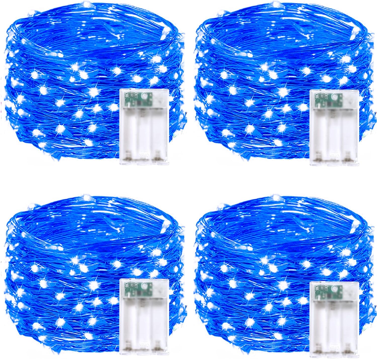4 Pack 20FT 60LED Battery Operated Fairy Lights with Timer, Waterproof Battery String Lights Outdoor Indoor, Battery Twinkle Light for Bedroom Wedding Birthday Party Chirstmas (Blue)
