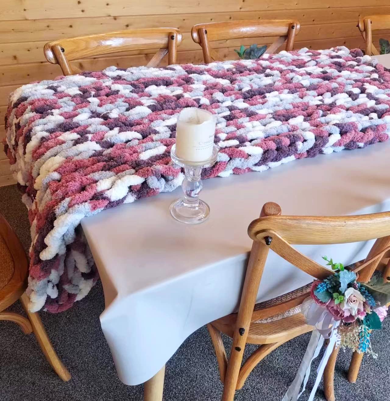 - COZY & WARM - Our chunky chenille blanket is 100% hand-knitted from Jumbo Chenille Yarn. This plush chunky blanket will provide the right warmth for a cozy night in bed.