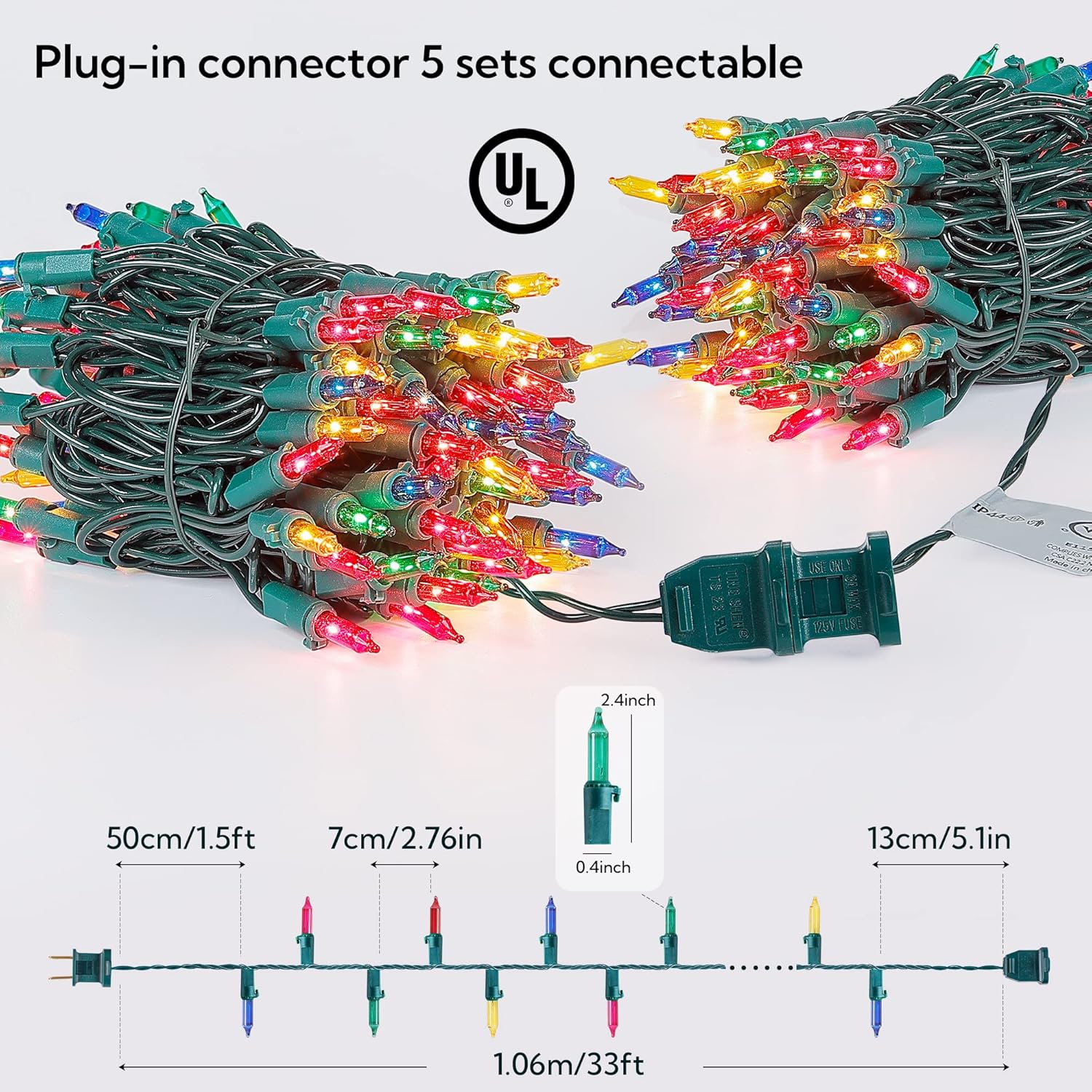- 🎄Independent Lighting with Friendly Usage:Clear string light is independently illuminated and does not affect each other .They are easy to fix and replace with spare extra bulbs and fuse that no additional tools needed.Each bulb has external lamp lock that prevents from loose when dress up your beautiful home.Thicker green wire with strong insulated copper core, tangle-free to use,High quality UL certified products ensure the safety of you and your family.