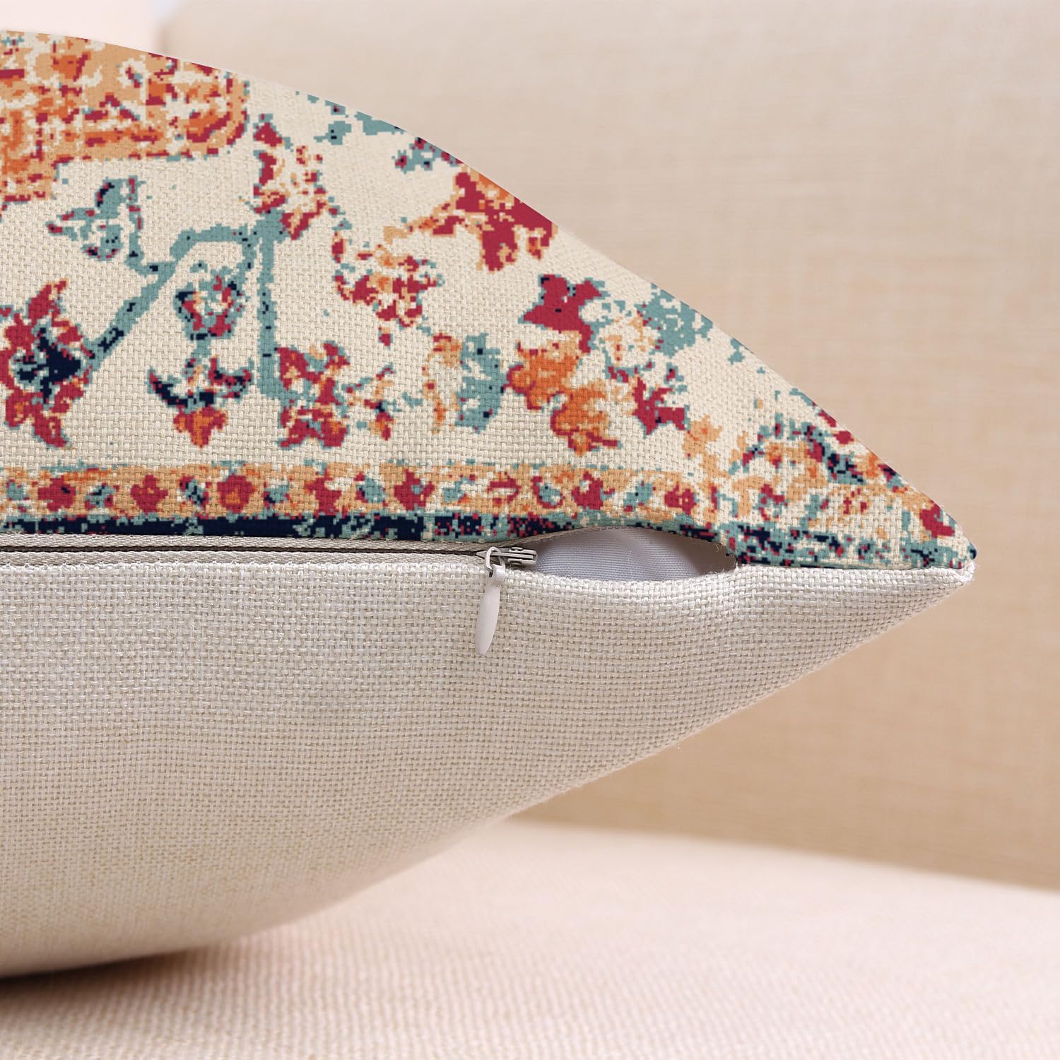 - 【Unique Design】:Unique bohemian carpet vintage floral pillowcase,The printed pattern is only available on front side, back is linen beige color without any printing. It can help you quickly change decorations, refresh your living space, and mix and match with other decorative pillows or holiday decorations. It's also a nice gift for family and friends