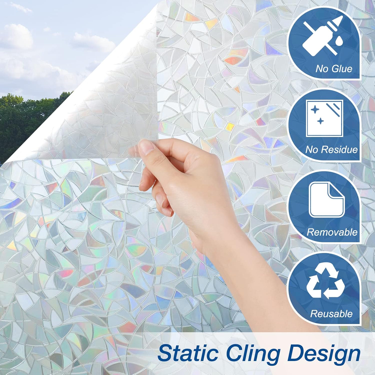 - No Glue: With no adhesive design, this static cling window film is easy to remove and re-use for multiple times. No worries about the films ruining your windows or messy sticky left after removing. It's perfect for a rented home, replaces expensive curtains, blinds. Besides, this window sticker is made of vinyl material that free of toxic chemical release and creates a safe home for you