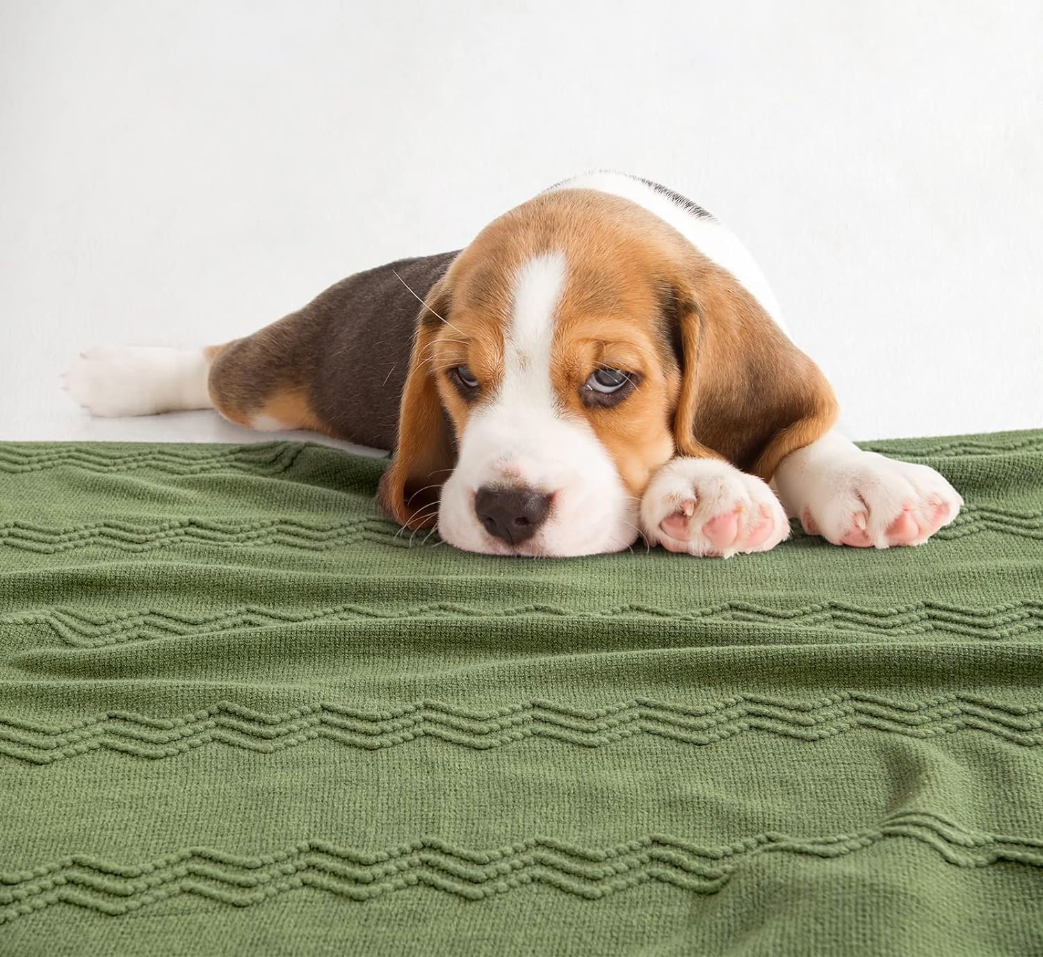 MIULEE Moss Green Knitted Throw Blanket for Couch Textured Knit Blanket with Tassels Cozy Woven Bed Blanket for Sofa Bed Chair Wave Pattern Spring Home Decor for All Seasons 50"x60"