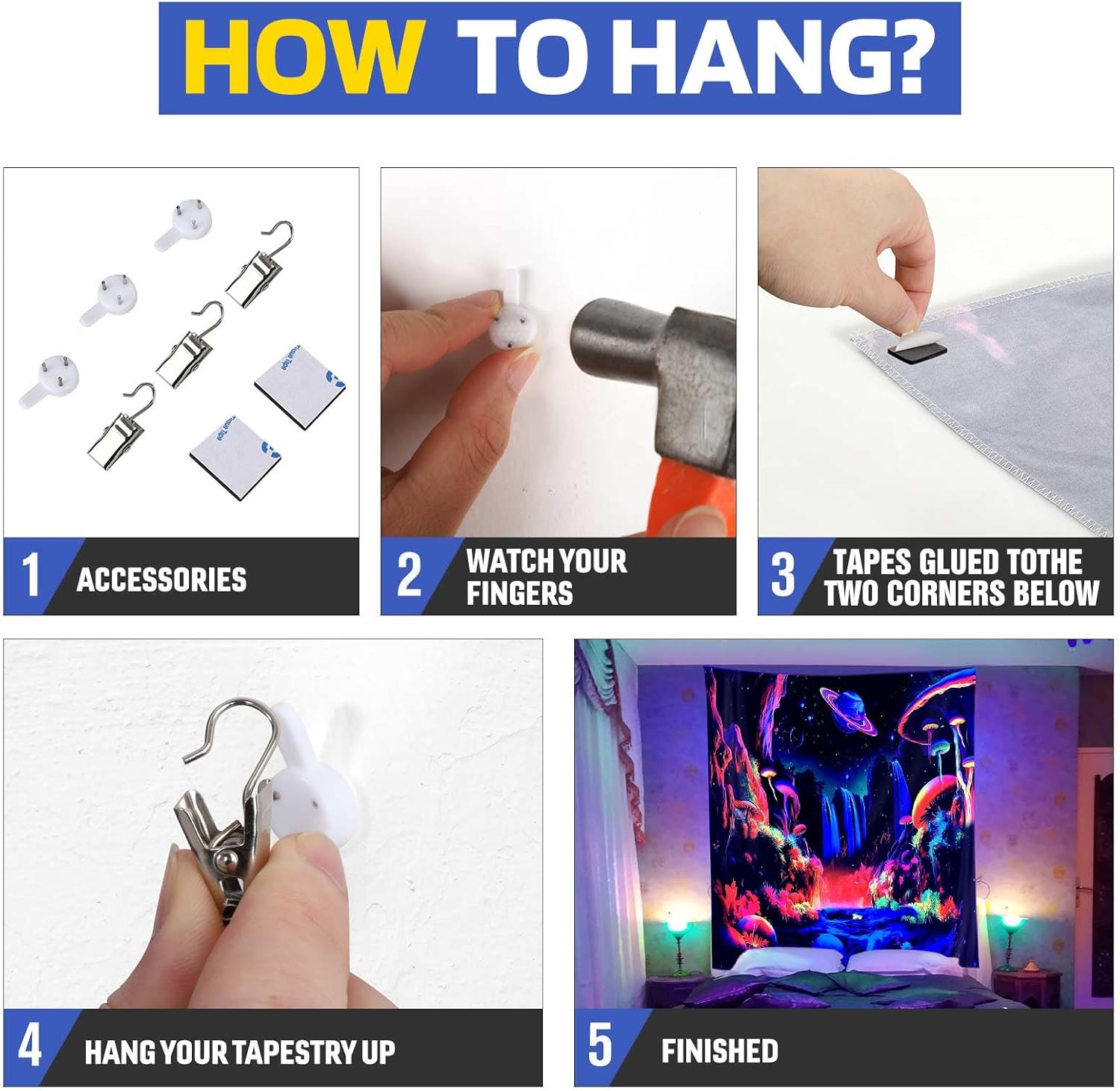 - 🌟 Brighten Up Your Space: ADDWel blacklight tapestry adds a vibrant and glowing touch to any room. ADDWel tapestry is printed with a UV-reactive ink that creates a neon-like effect under blacklight. Perfect for parties, raves, and other events that require a fun and unique atmosphere.