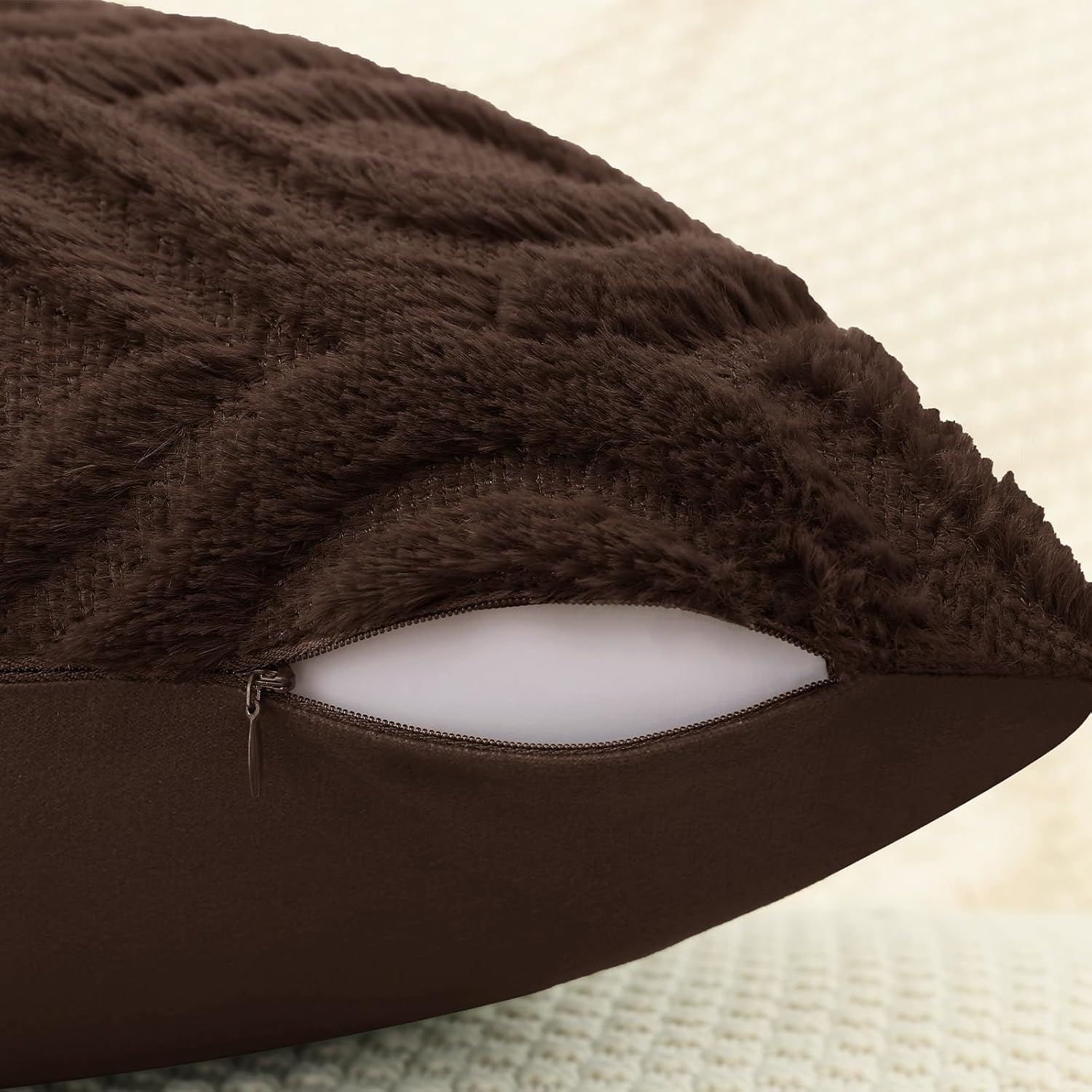 decorUhome Throw Pillow Covers 24x24 Inch Set of 2, Soft Plush Decorative Faux Fur Dark Brown Solid Couch Pillow Covers, Accent Farmhouse Neutral Square Euro Pillow Cases for Sofa Bed Living Room