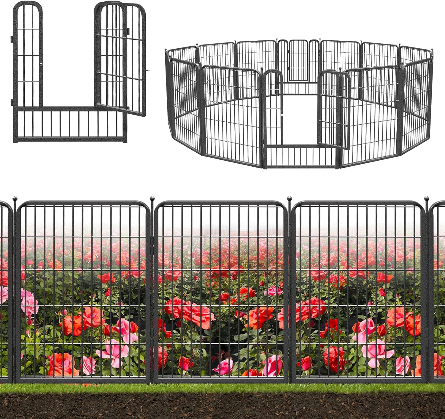 - Rust-proof & Sturdy Construction: Jhsomdr garden fence features double powder coated finish, rustproof, less maintenance, longer use. The metal fence panels are made of heavy duty iron and thick wire, no tearing, chewing, cracking and bending. The fence can work well for long time in bad weather