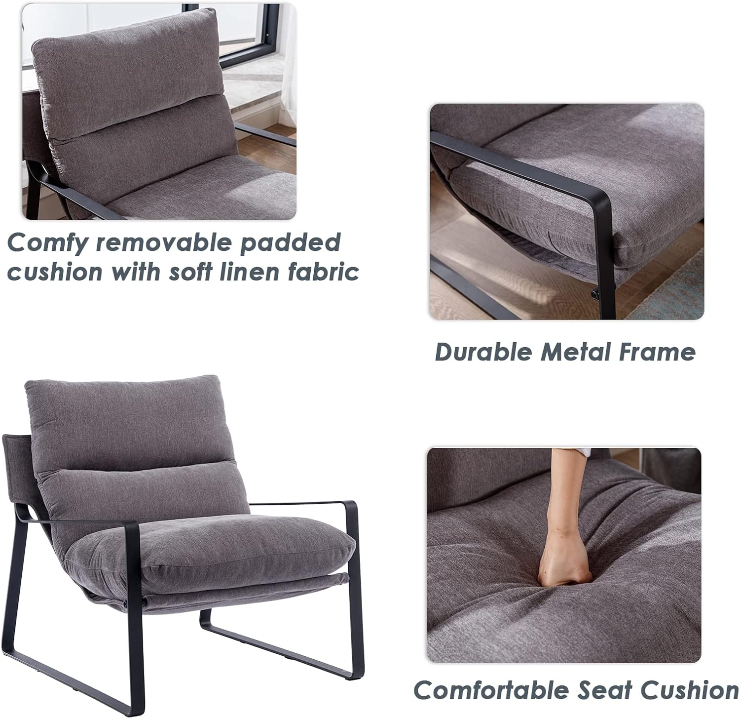 DUOMAY Modern Accent Arm Chair, Comfy Linen Lounge Lazy Chair with Metal Leg, Mid-Century Corner Chair for Living Room Bedroom Office Apartment, Grey