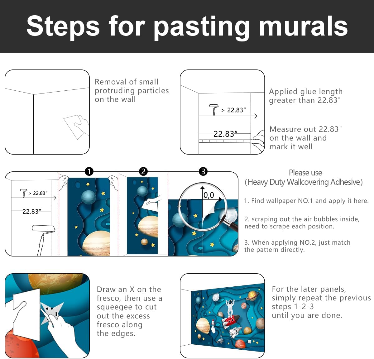 - 💕Wallpaper installation can refer to our main picture, the package will also be placed inside the installation instructions.