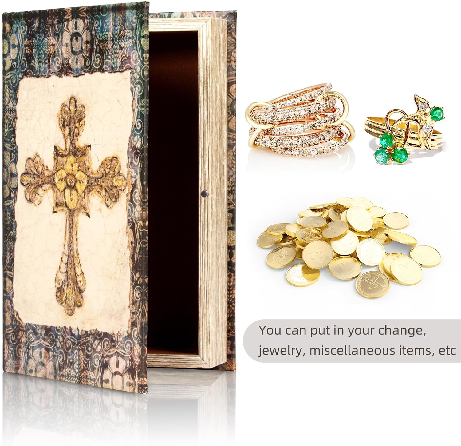 Vintage Style Wooden Decorative Book Box - Faux Leather, Christian Cross Pattern, Gift Idea