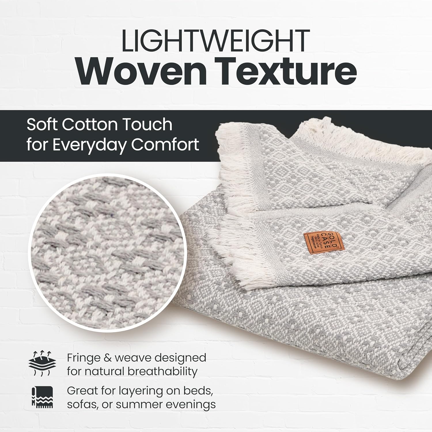Gold Case Throw Blanket for Couch – 100% Recycled Turkish Cotton Blankets & Throws – Elegant Decorative Throw Blankets for Living Room Sofa – Woven Throws for Couch – Retro Grey – 50x60