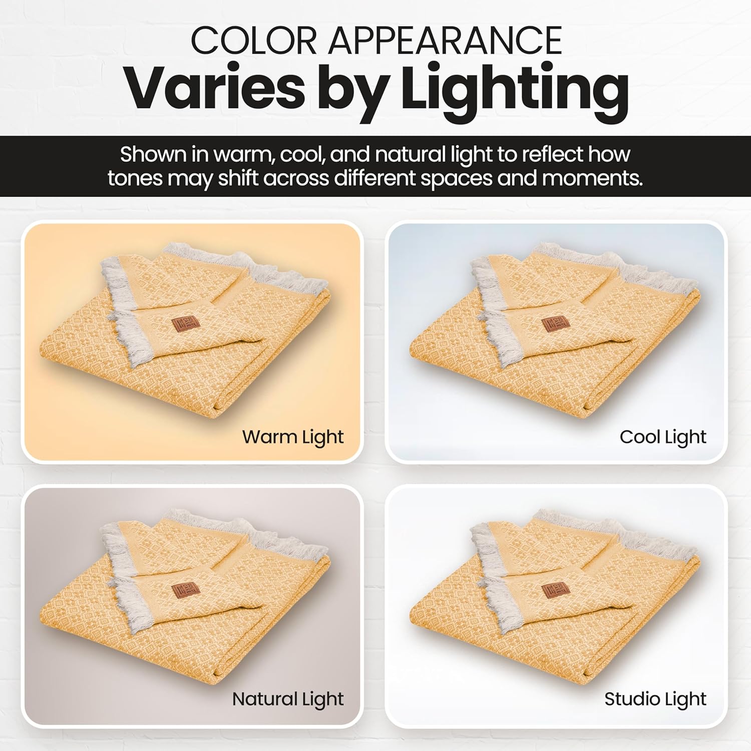 Gold Case Throw Blanket for Couch – 100% Recycled Turkish Cotton Blankets & Throws – Elegant Decorative Throw Blankets for Living Room Sofa – Woven Throws for Couch – Retro Mustard – 50x60