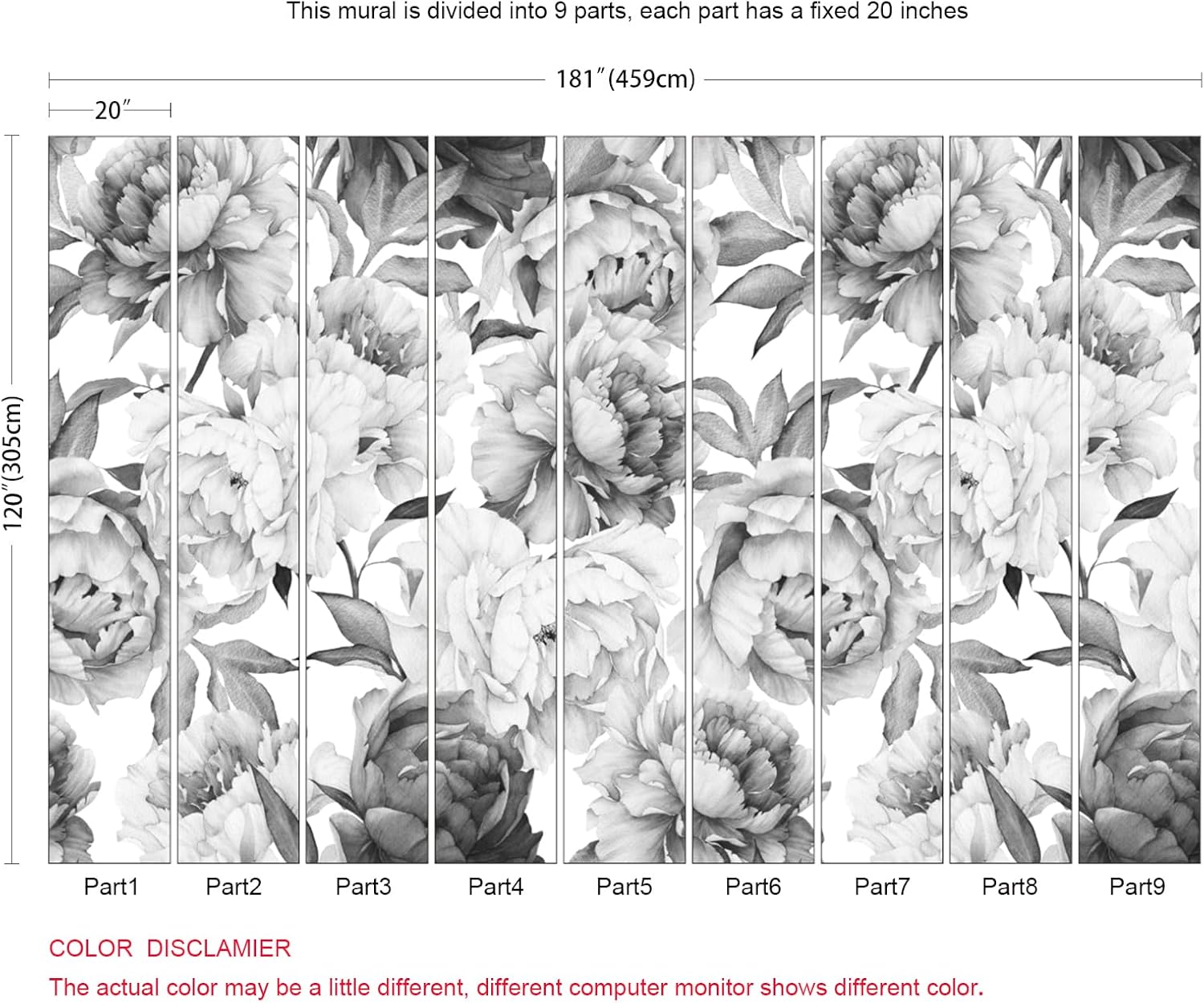 - Dimension:Approx. 181"x120" (Width x Height). This mural wallpaper is cut into 9 strips for easy installation.