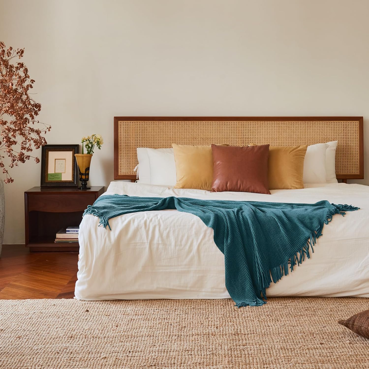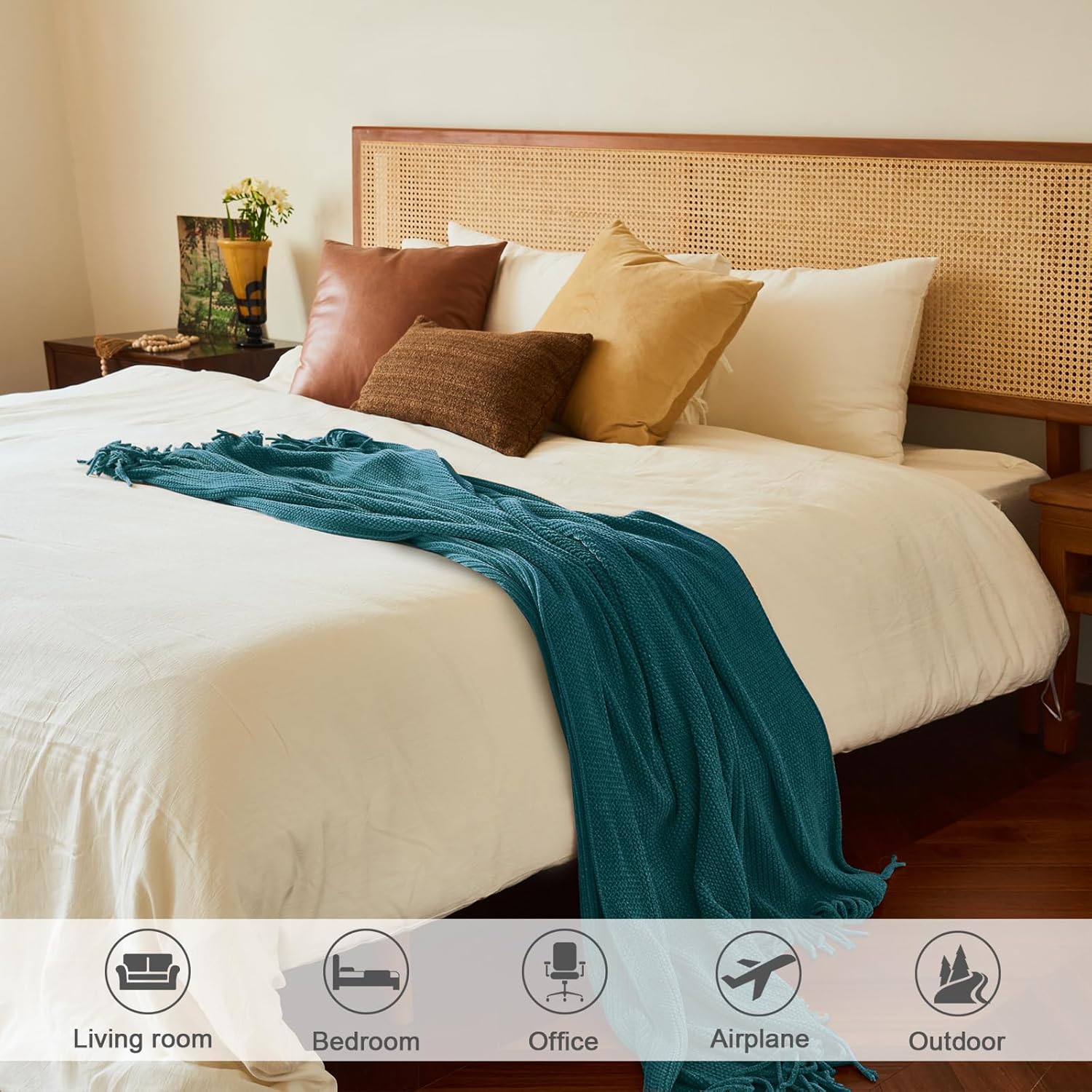 lifein Throw Blanket for Couch, Soft Boho Decor Bed Throw,Cozy Teal Knitted Chenille Small Farmhouse Lightweight Throw for Spring(Teal,50 * 60")