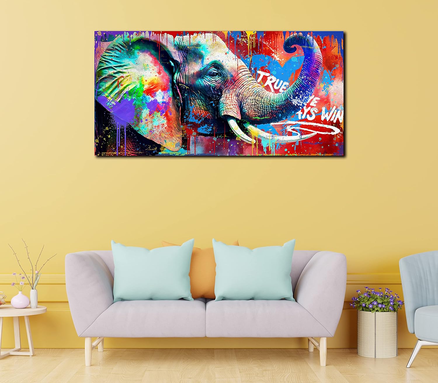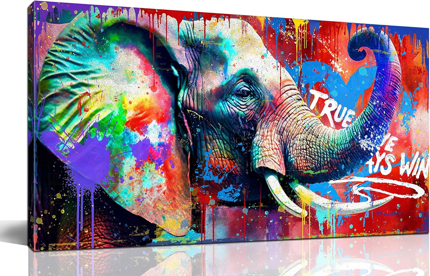 - 【CANVAS WALL ART SIZE】 Size is 59" x 29" Graffiti elephant canvas wall art wall art bedroom decor for teen boys funny animal wall art.