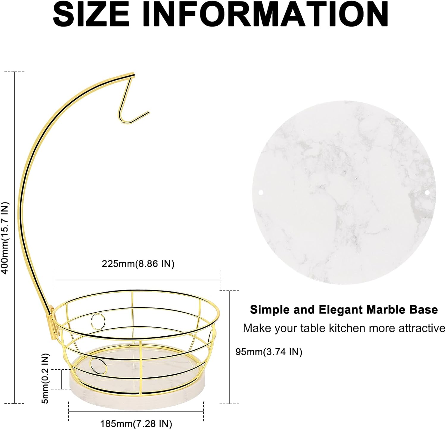 - BEAUTIFUL MARBLE BASE: Each marble base has an unique charming color and texture. Its elegant and stylish look makes the banana hanger with fruit basket more attractive. Heavy weighted design of marble base is stable to protect banana hanger from falling when take out bananas.