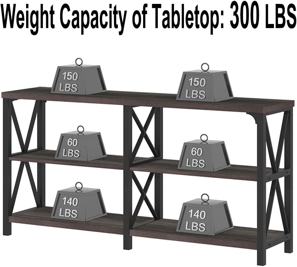 LVB Rustic Console Table, Industrial Modern Sofa Table Behind Couch, Long Metal Wood Entryway Table with Storage Shelf, Farmhouse Foyer Hallway Table for Home Living Room Bedroom, Dark Gray Oak, 63 in