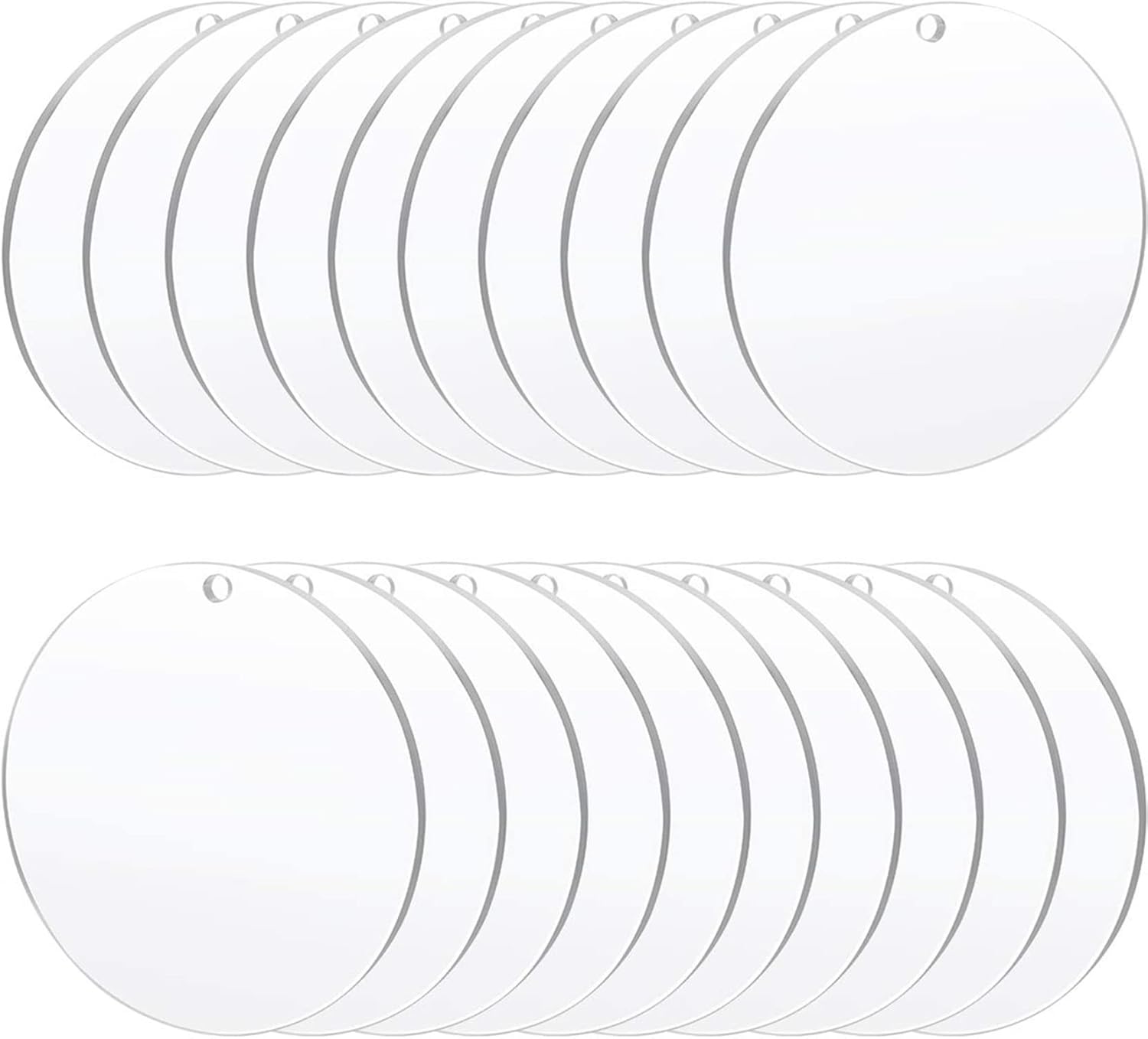 - Package Quantity:50 pieces 3.5" clear acrylic blanks round with 4 mm holes for easy hanging to make acrylic charms and clear craft ornaments