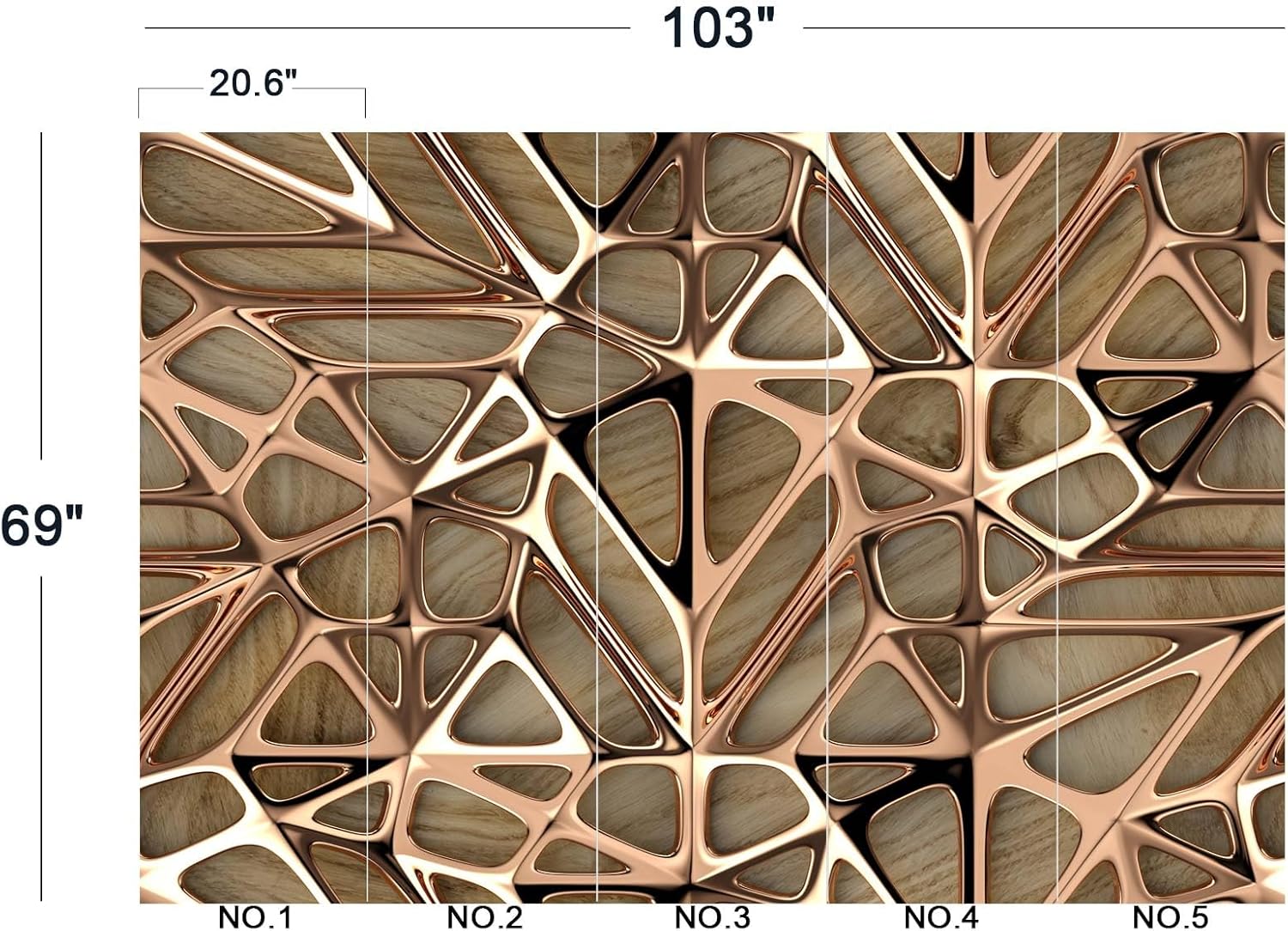 - The size of the wallpaper is 103" wide x 69" high and divided into 5 panels.