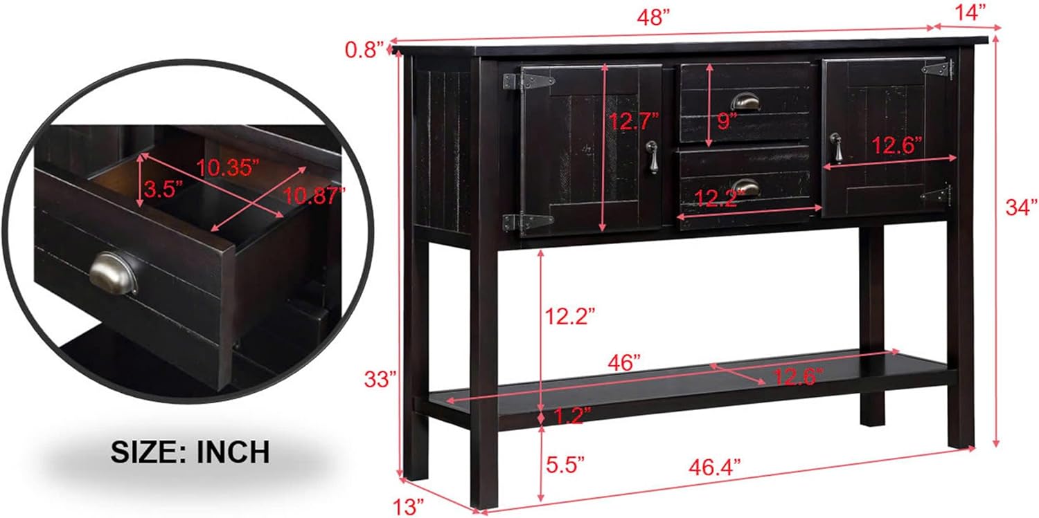 - 【Retro Sofa Table】The console table 48 '' L* 14 '' W*34'' H .Solid Wood Sideboard Console Table features a retro design that adds a touch of vintage charm to your foyer, entryway, or dining room. Its classic aesthetic enhances the overall ambiance of your space.
