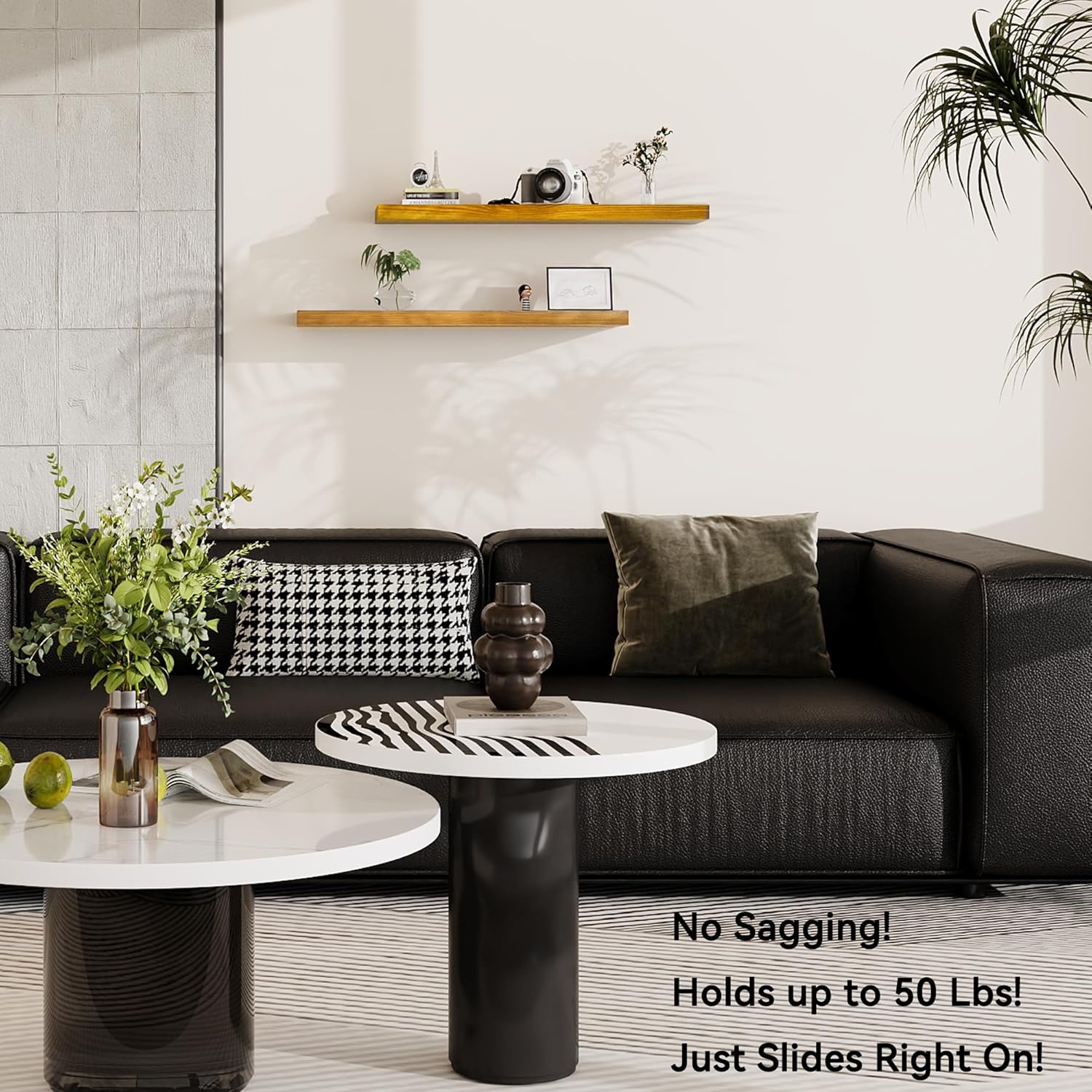 BGMG Wood Floating Shelves for Wall 36 inch Set of 2,Rustic Wooden Wall Mount Shelves for Bathroom Living Room Bedroom Kitchen Farmhouse-36x 6.7 x1.25 inch- Gold Oak