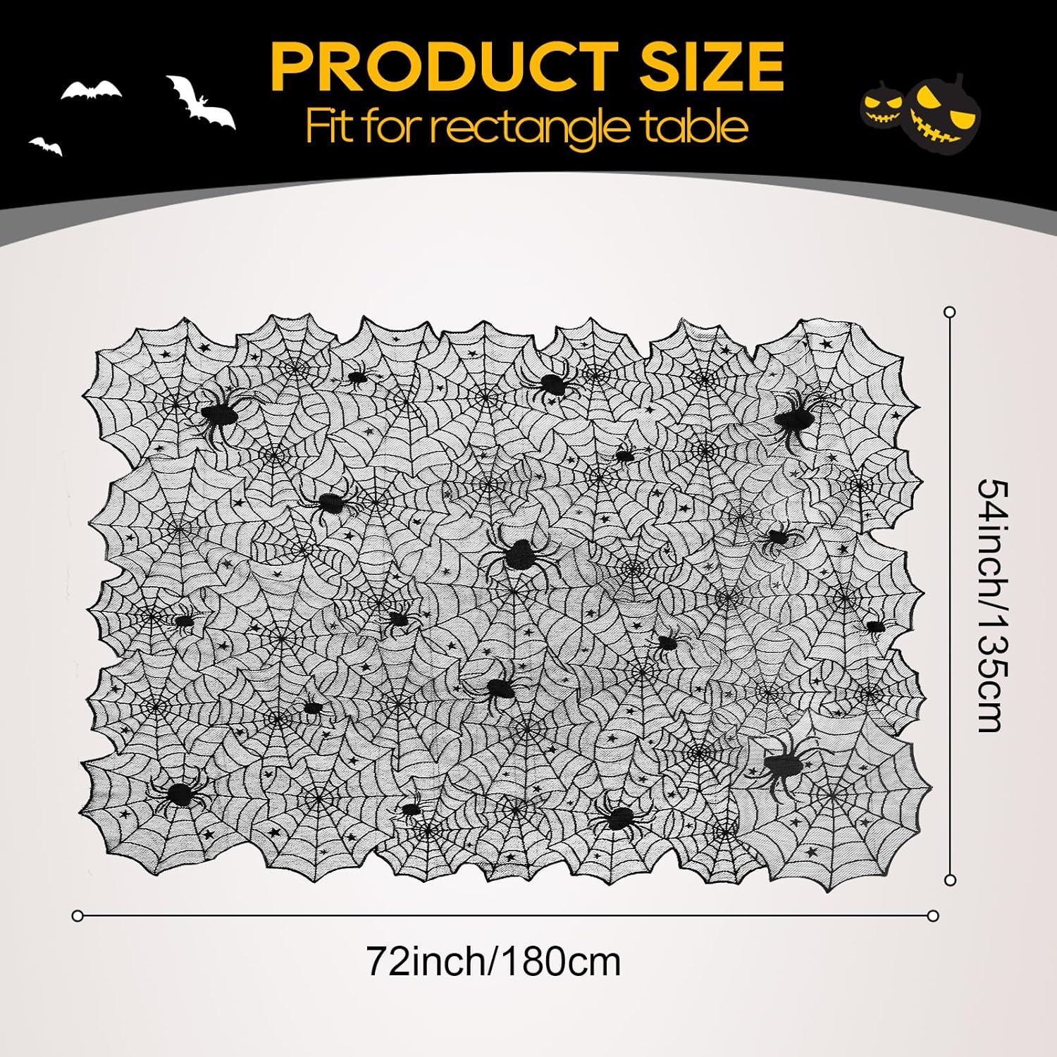 - PREMIUM QUALITY - This spider webs Halloween decorations is made of polyester fabric, which is anti-crease, durable, lightweight and also can be folded up and clean up easily. Size: 54 x 72 inches.