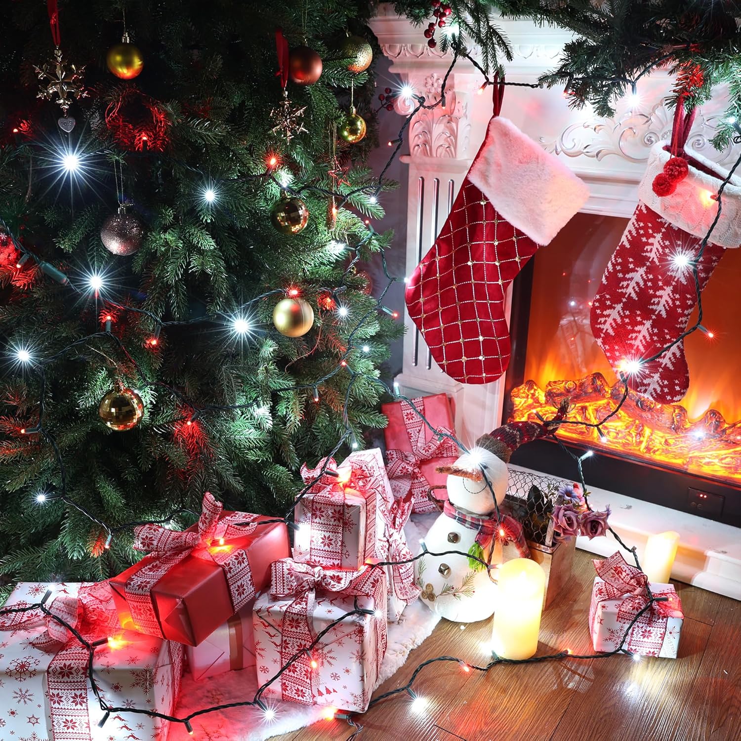- UL Certified, Waterproof led Christmas Lights Outdoor: IP44 waterproof red and white Xmas tree lights, UL Certified; approved for indoor/outdoor use. Ideal for indoor/ outdoor Christmas, tree, party and home decorations.