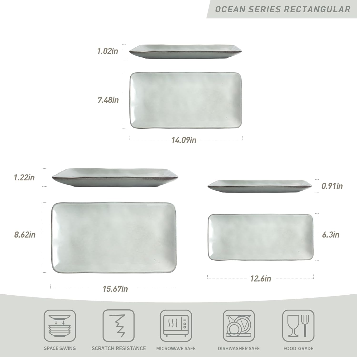 - Dishwasher and Microwave Safe: Famiware rectangle plates are made of premium stoneware. Each serving platters and trays is Dishwasher and microwave safe.