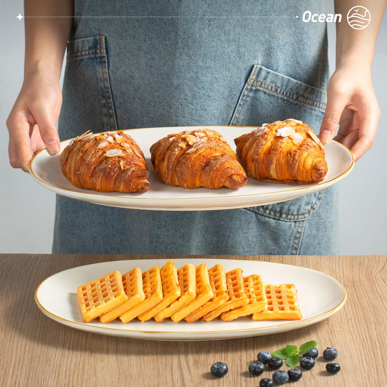 famiware Serving Platter, Oval 15.59/14.3/12.9inch Serving Dishes for Entertaining, Serving Bowls, Microwave Safe, Stoneware Serving Trays for Party, Food, Turkey, Cheese, Ocean Series, Vanilla White