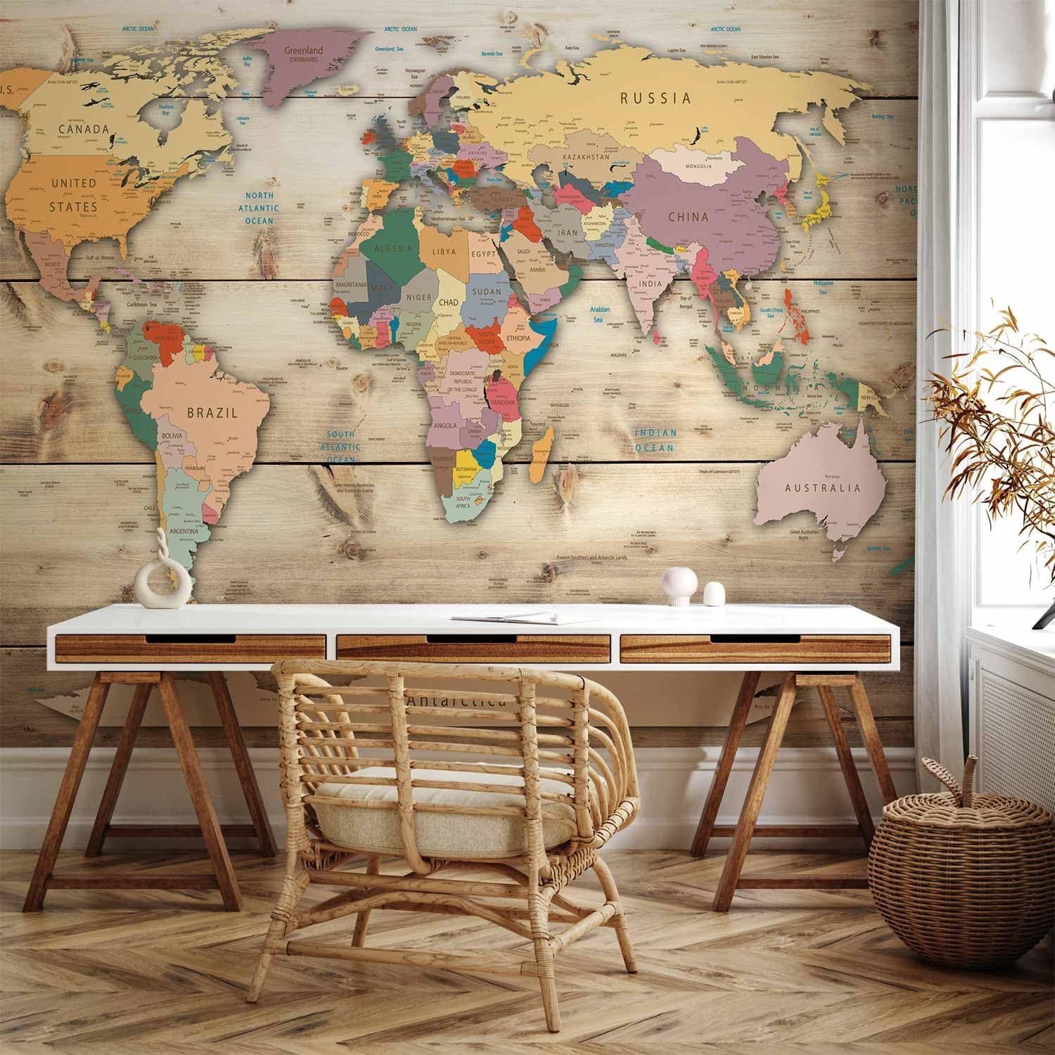 artgeist Premium Wall Mural World Map 138x101 in - XXL Non-Woven Wallpaper Fleece Wall Decor Photo Print Picture Image Design Home Map of The World k-B-0009-a-b