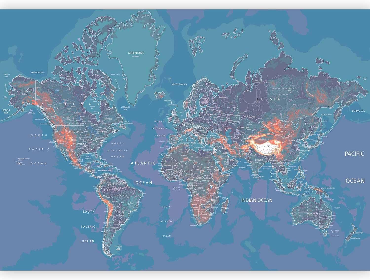artgeist Premium Wall Mural World Map 157x110 in - XXL Non-Woven Wallpaper Fleece Wall Decor Photo Print Picture Image Design Home Map of The World k-A-0061-a-d