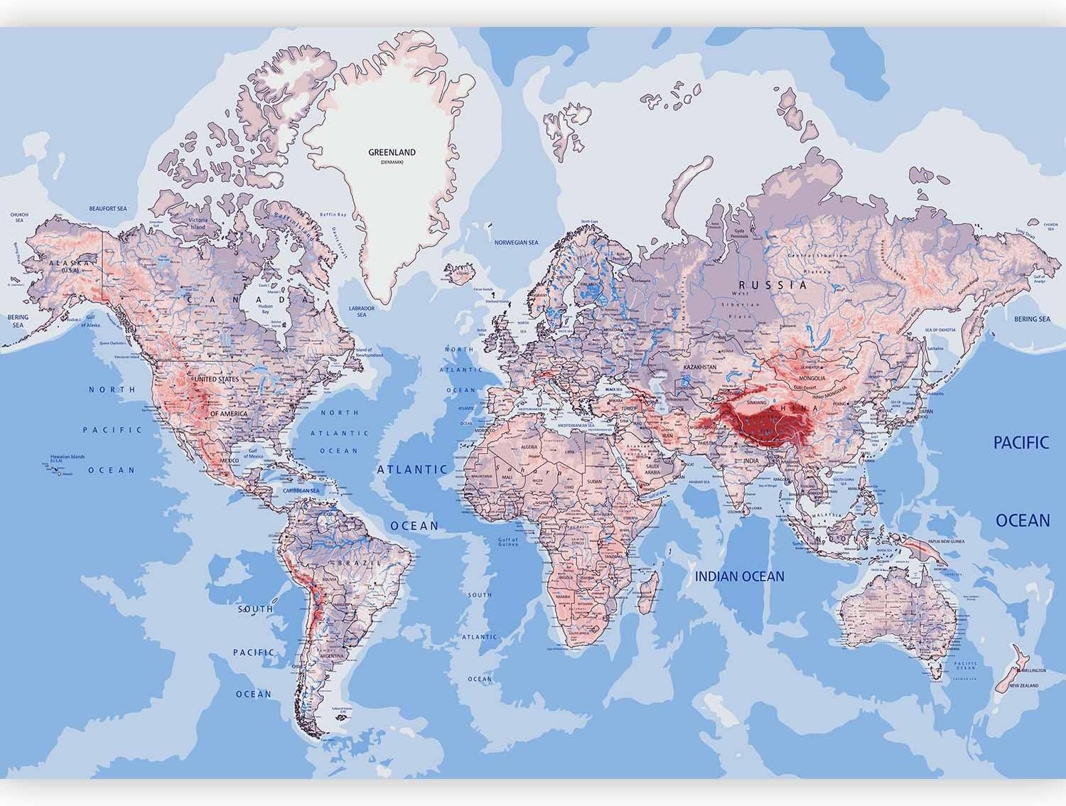 artgeist Premium Wall Mural World Map 118x83 in - XXL Non-Woven Wallpaper Fleece Wall Decor Photo Print Picture Image Design Home Map of The World k-A-0061-a-b