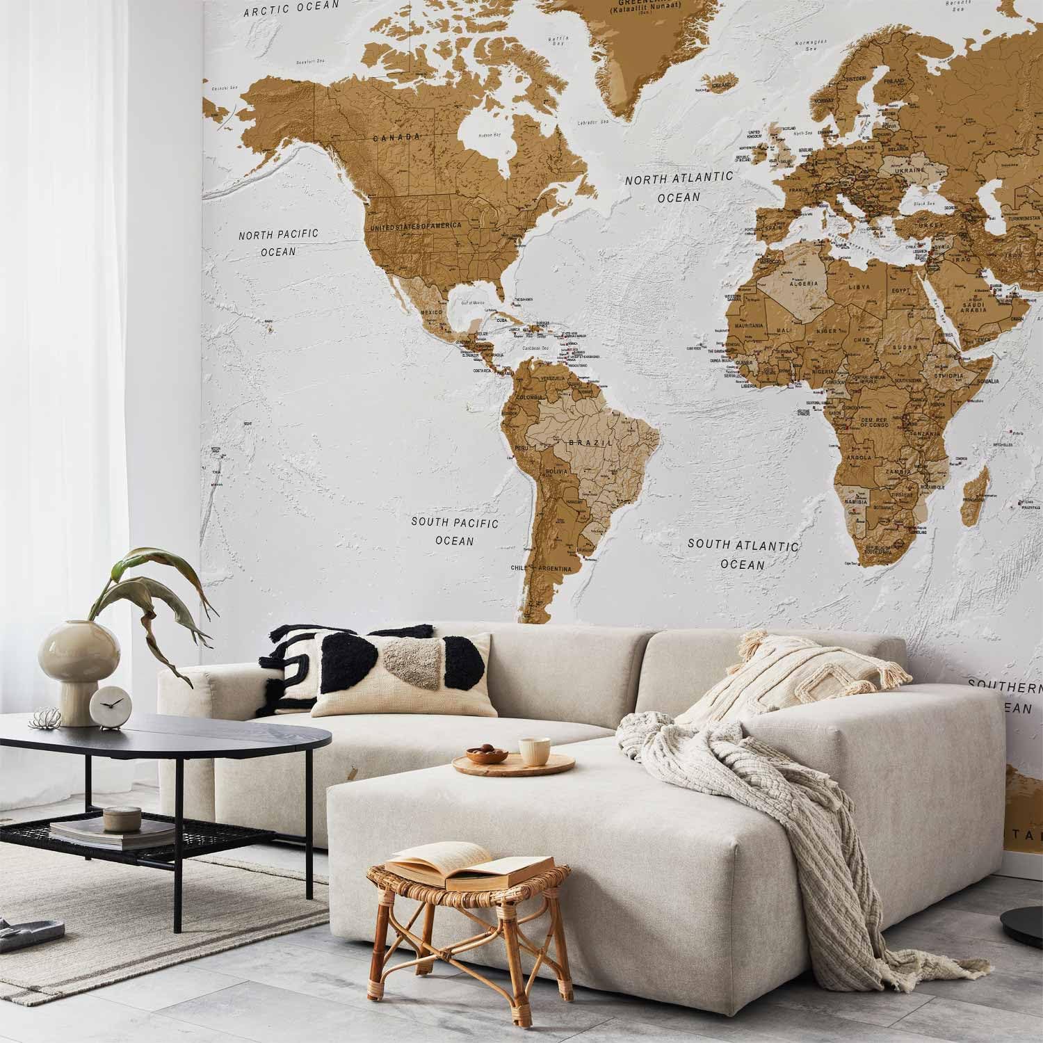 artgeist Premium Wall Mural World Map 118x83 in - XXL Non-Woven Wallpaper Fleece Wall Decor Photo Print Picture Image Design Home Map of The World k-A-0093-a-a