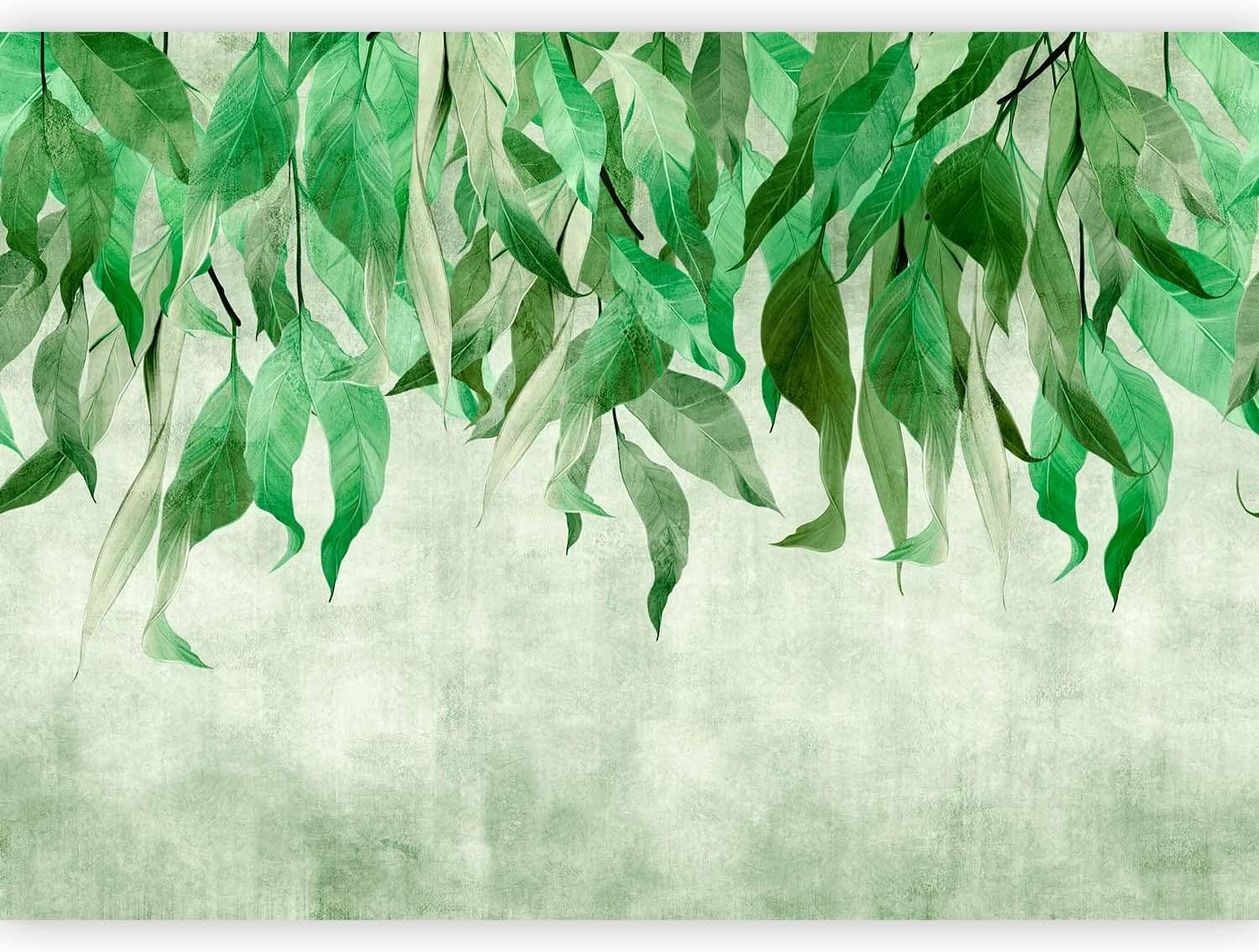 artgeist Premium Wall Mural Hanging Leaves 157x110 in - Non-Woven Wallpaper Fleece Wall Decor Photo Print Picture Image Design Nature Botanical Concrete Green Like Painted b-C-10146-a-a