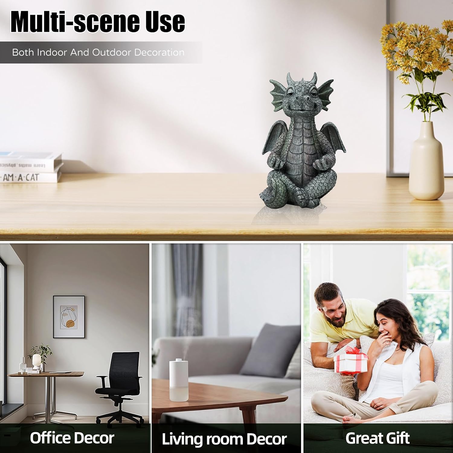 - 【Widely Used】The yard art dragon sculpture can create a harmonious and peaceful atmosphere, you can place it in your garden, lawn,flower bed, patio, or use it in office, living room, yoga space, desk and home decor.