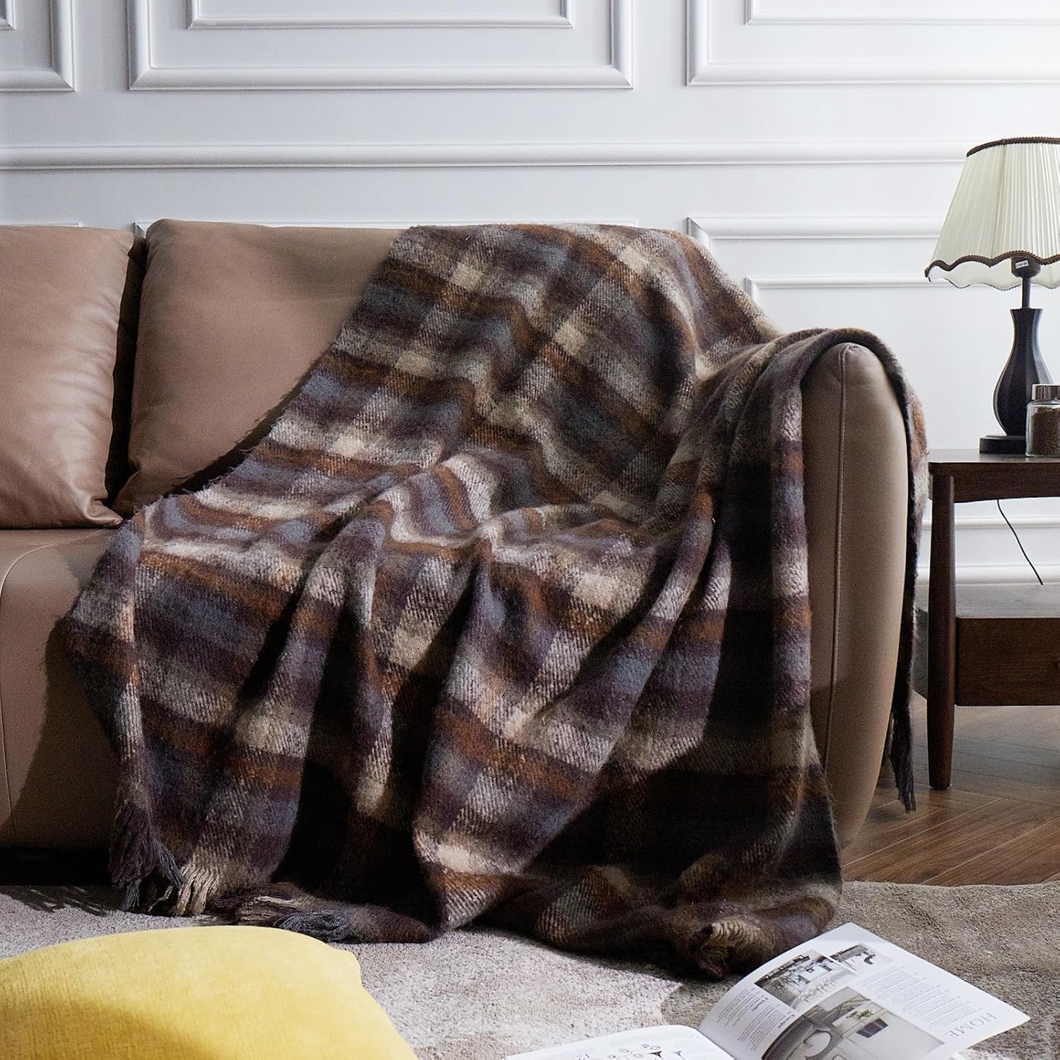ZonLi Brown Throw Blanket, 50" x 60" Fall Decorative Classic Blankets with Tassel for Couch, Bed, Sofa, Chair, Outdoor, Cozy Warm Lightweight Blankets (Brown)