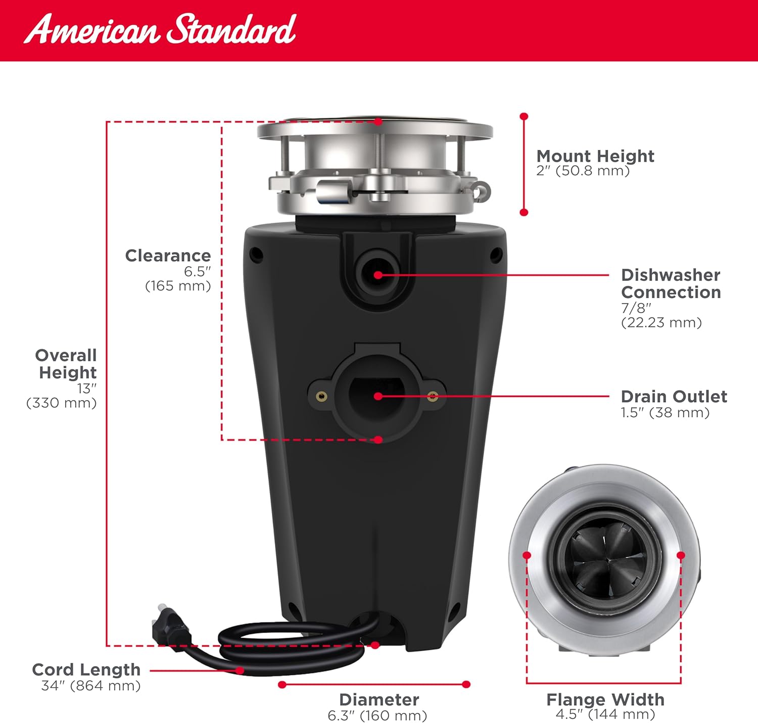 - COMPACT DESIGN AND DURABLE CONSTRUCTION: With a compact and space-saving design, the American Standard Slim Line garbage disposal fits easily under the sink, maximizing available storage space in the kitchen; High-quality Stainless Steel materials ensure long-lasting performance for every-day use
