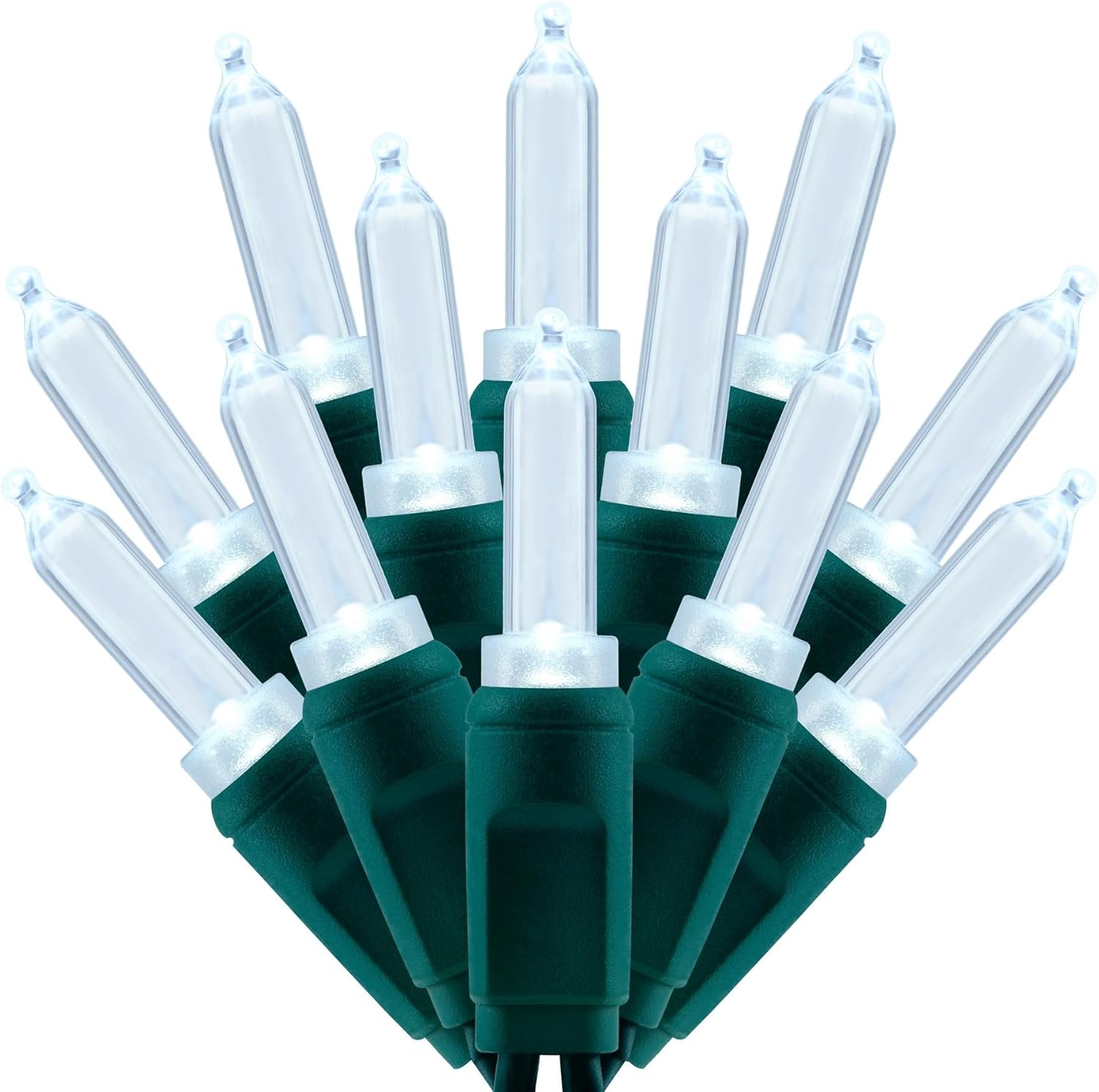 100 Cool White One-Piece LED Christmas Lights, 33 ft Green Cord High Waterproof UL Certified T5 Outdoor String Lights (Cool White)