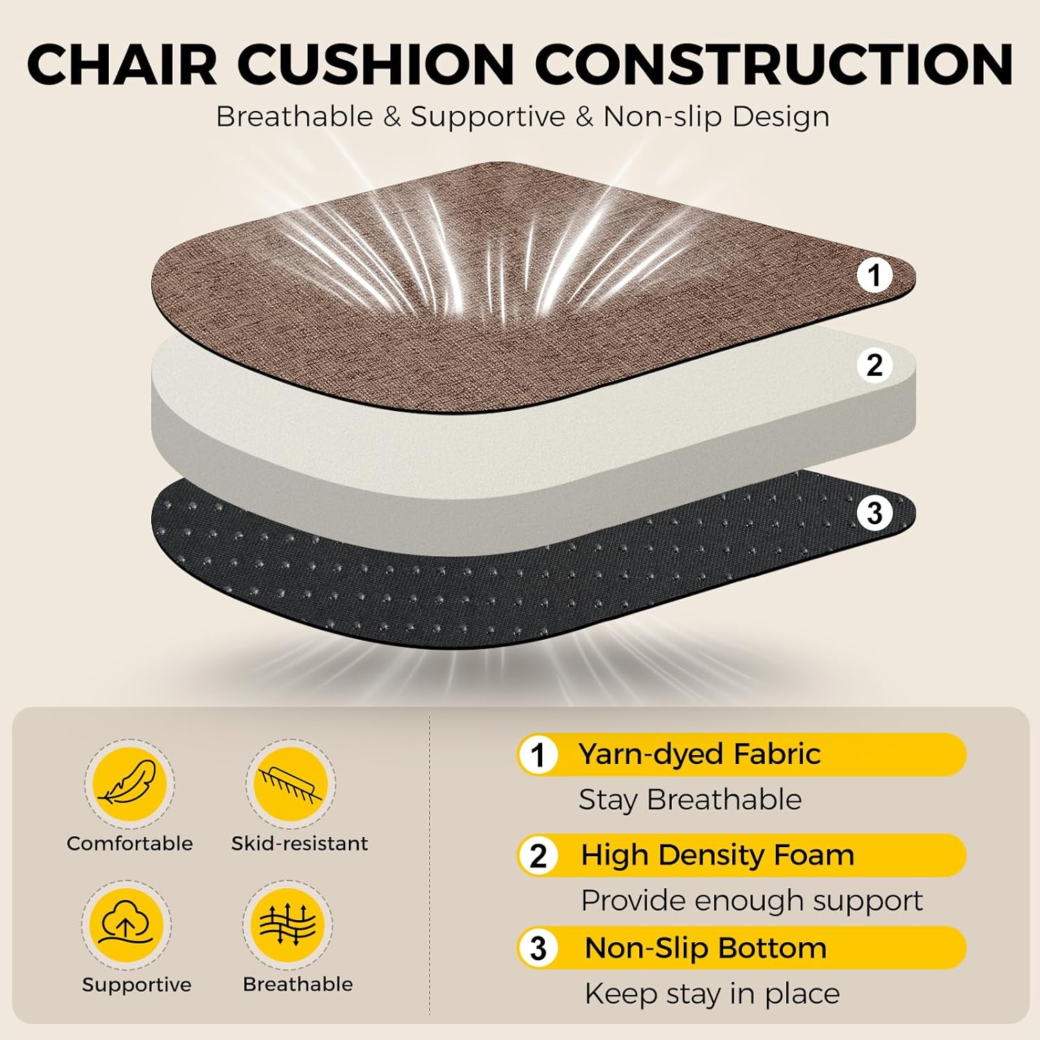 - Stay in Place: Attached ties and non-slip silicone bottom can double keep the seat cushion in place absolutely to prevent it from sliding. You don't need to adjust the dining chair cushions many times and just concentrate on enjoying your life