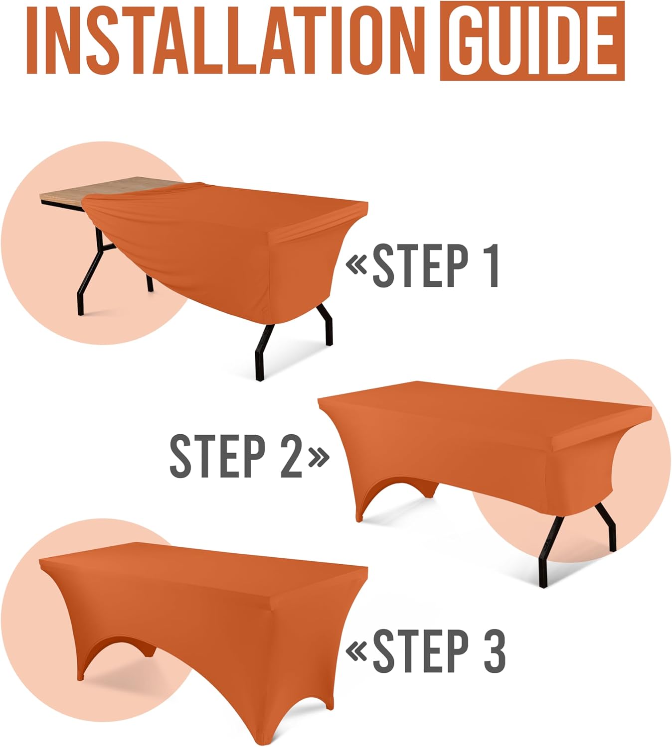 Utopia Kitchen 6FT Spandex Tablecloth [2 Pack, Orange] 200 GSM Stretch, Fitted, Washable and Wrinkle Resistant Table Cloth Rectangle Cover for Trade Shows, Wedding, Parties [72Lx30Wx30H Inch]