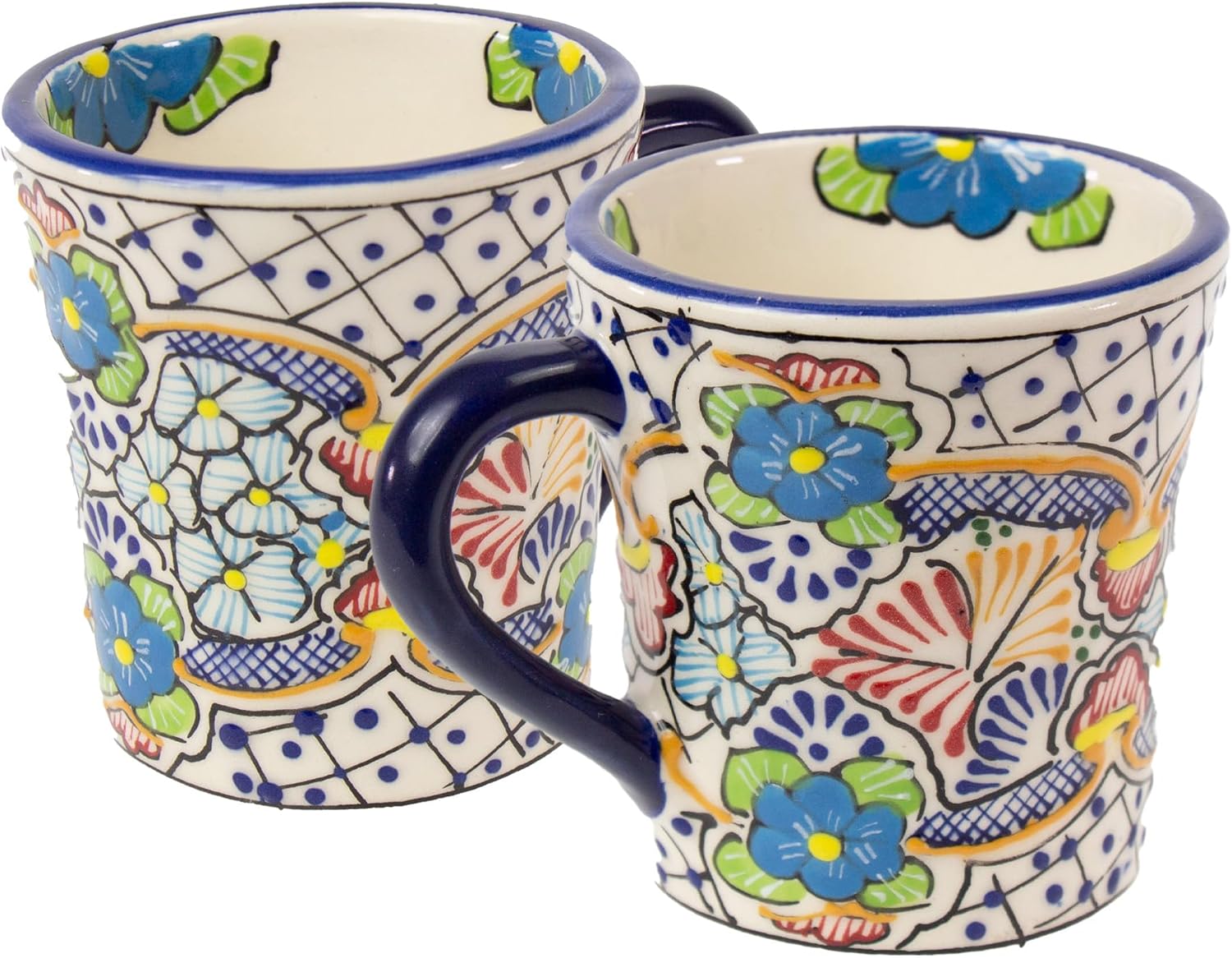 Encantada Handmade Hand-Painted Authentic Mexican Pottery Mugs (Multi Blue Green)