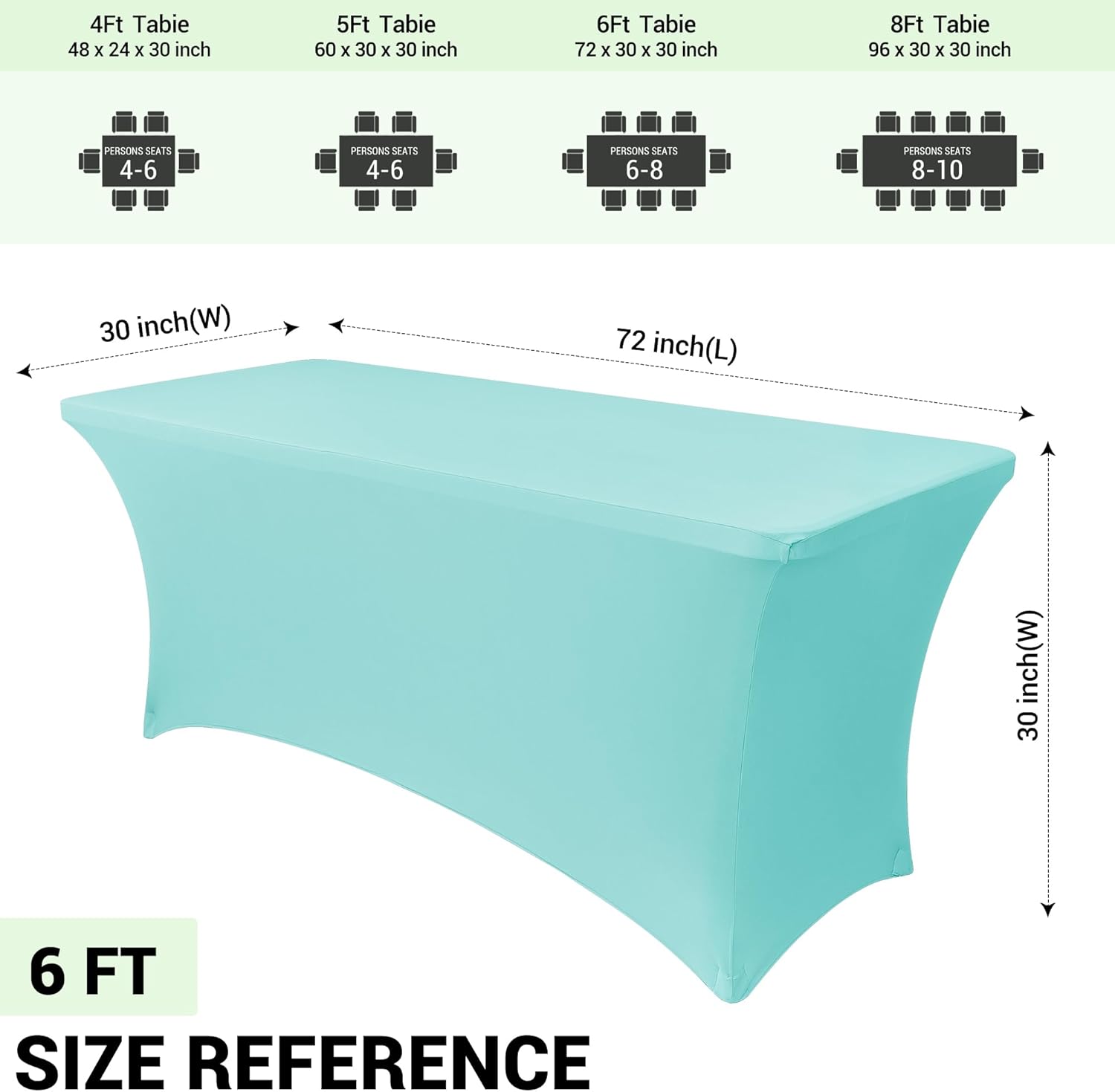 Obstal 6ft Stretch Spandex Table Cover for Standard Folding Tables - Universal Rectangular Fitted Tablecloth Protector for Wedding, Banquet and Party, 72L x 30W x 30H Inches, Blue, 2pc