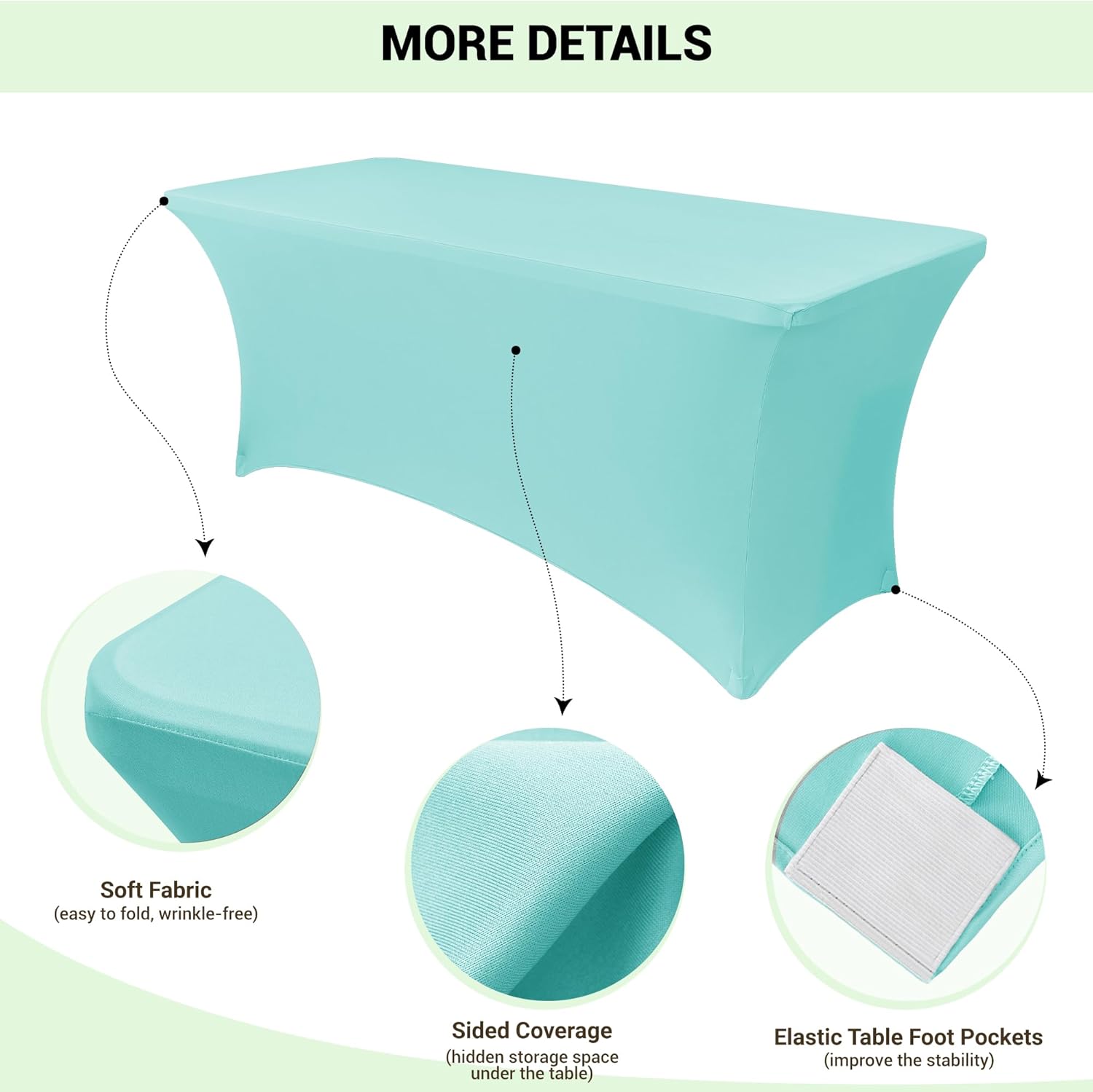 Obstal 4Ft Stretch Spandex Table Cover for Standard Folding Tables - 2 Pack Universal Rectangular Fitted Tablecloth for Party, Banquet, Events, Trade Show (Fresh Blue, 48L x 24W x 30H Inches)