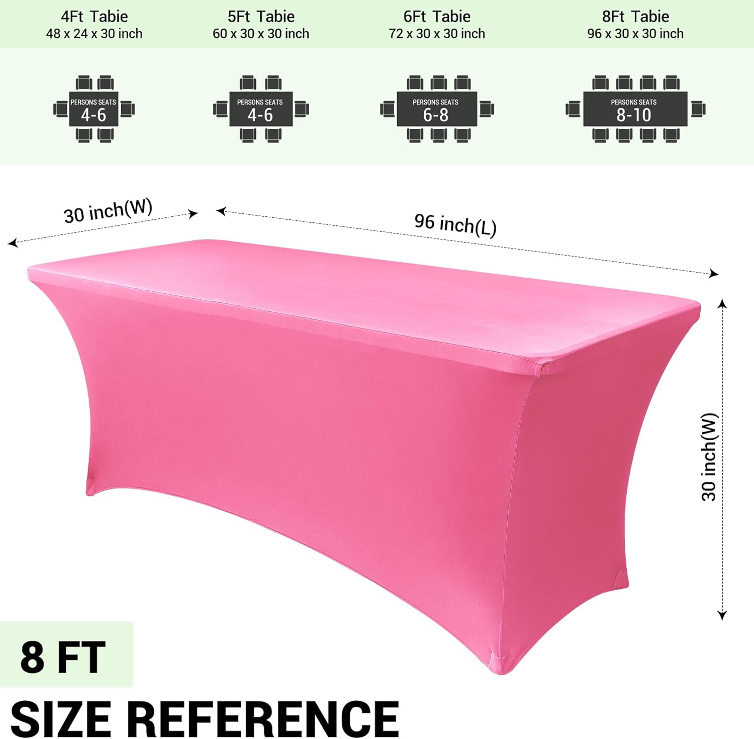 Obstal 8Ft Stretch Spandex Table Cover for Standard Folding Tables - 2 Pack Universal Rectangular Fitted Tablecloth for Party, Banquet, Events, Trade Show (Dark Pink, 96L x 30W x 30H Inches)
