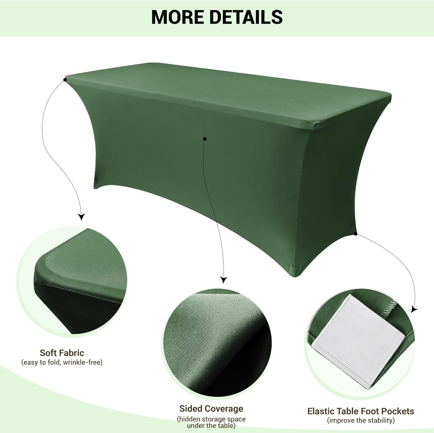 Obstal 8Ft Stretch Spandex Table Cover for Standard Folding Tables - 2 Pack Universal Rectangular Fitted Tablecloth for Party, Banquet, Events, Trade Show (Blackish Green, 96L x 30W x 30H Inches)