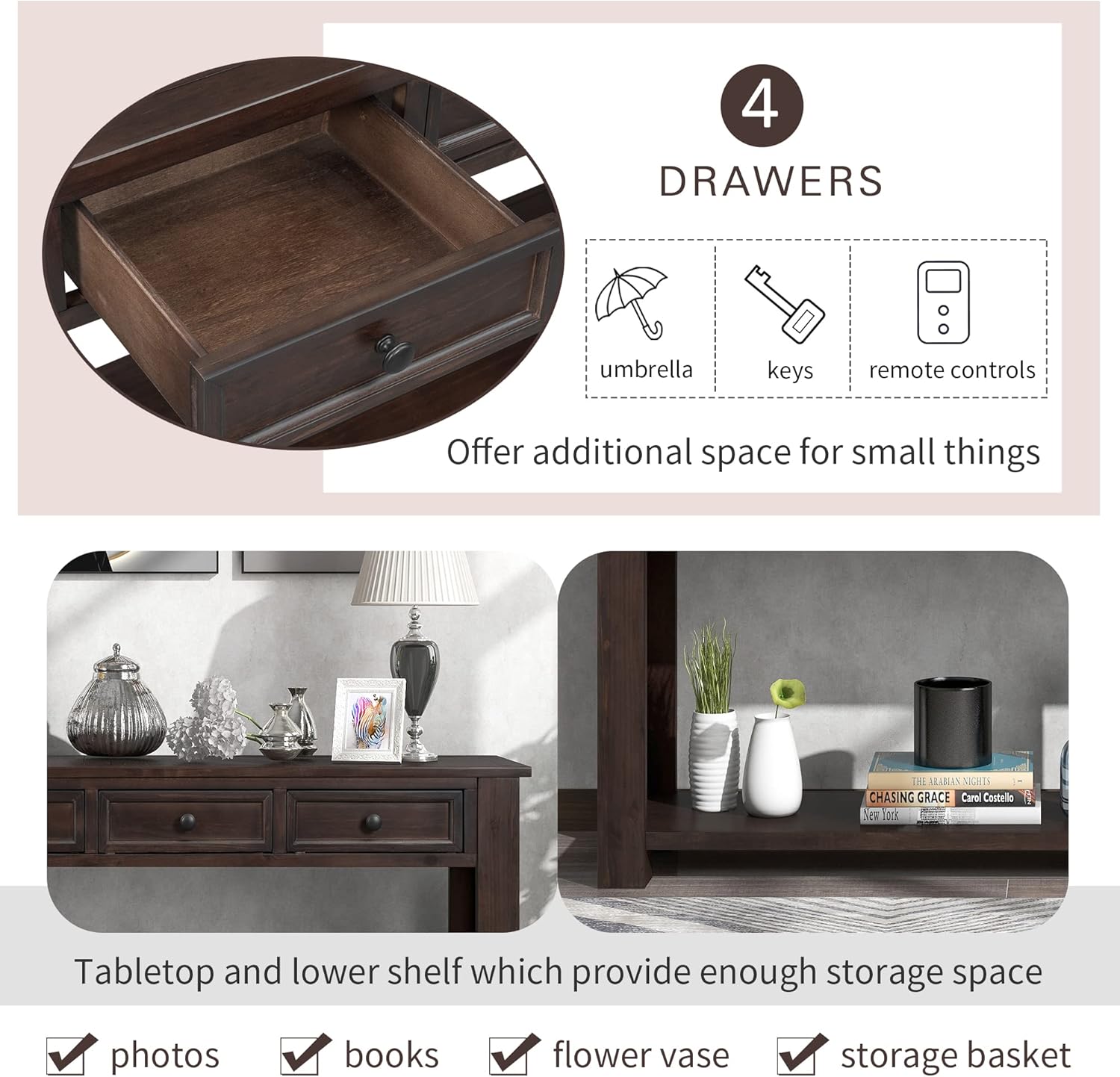63" Solid Wood Console Table Sofa Table with Storage Drawers and Bottom Shelf,Farmhouse Entryway Table for Hallway Foyer,Sofa Couch Table,Fully Assembled (63" Espresso)