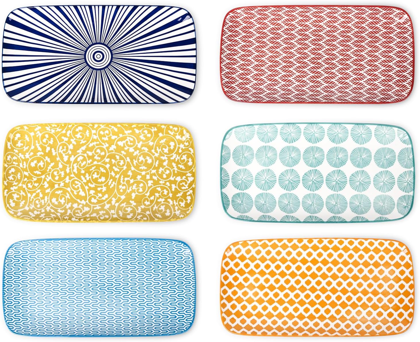 Selamica Ceramic Serving Platters, 12 Inch Serving Trays for Party Entertaining, Large Rectangular Serving Plates, Set of 6, Assorted Colors