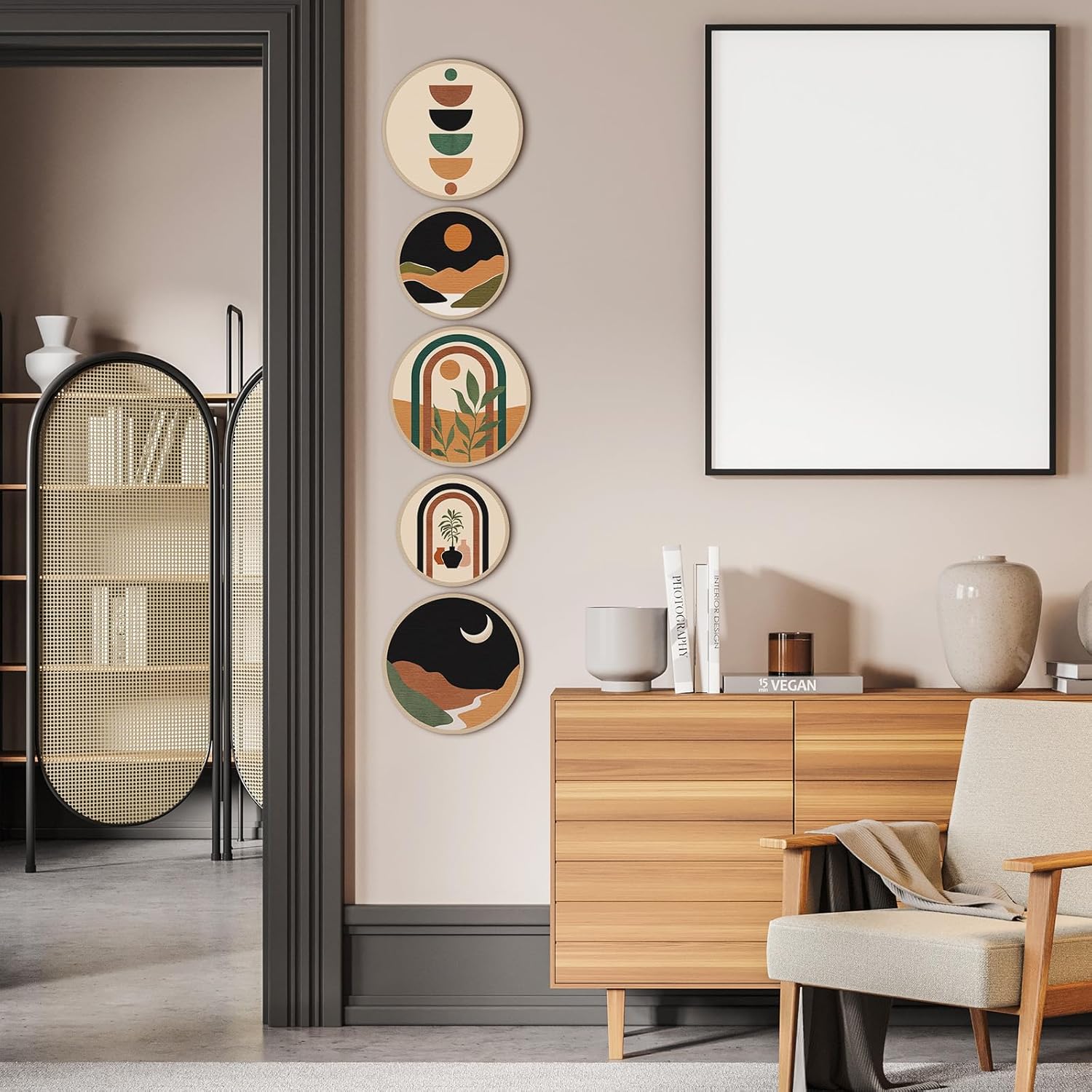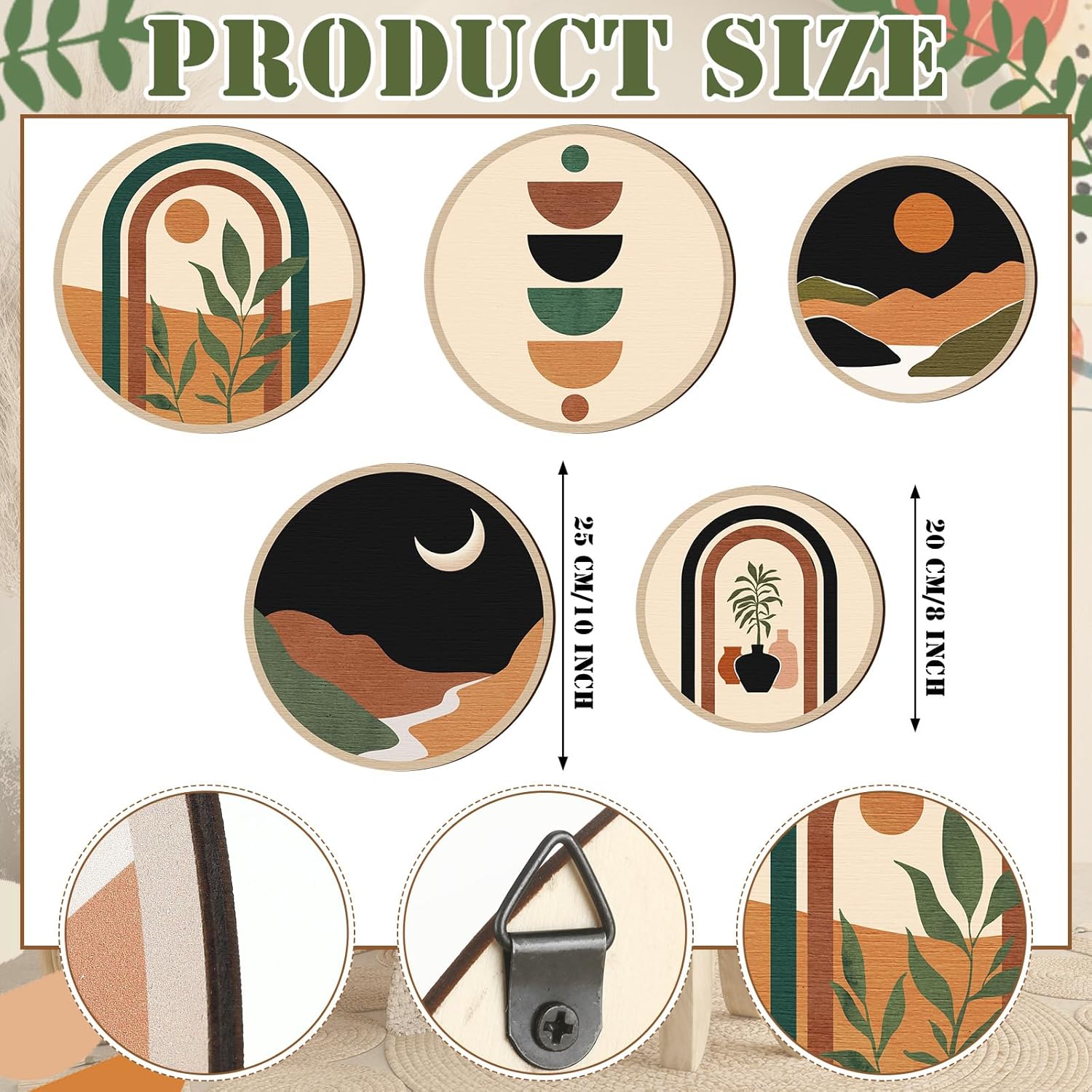 Qunclay 5 Pcs Wall Art Decor Wooden Living Room Wall Decor Bohemian Hanging Farmhouse Geometric 10'' and 8'' Aesthetic Wood Minimalist Posters for Bedroom(Sunset)