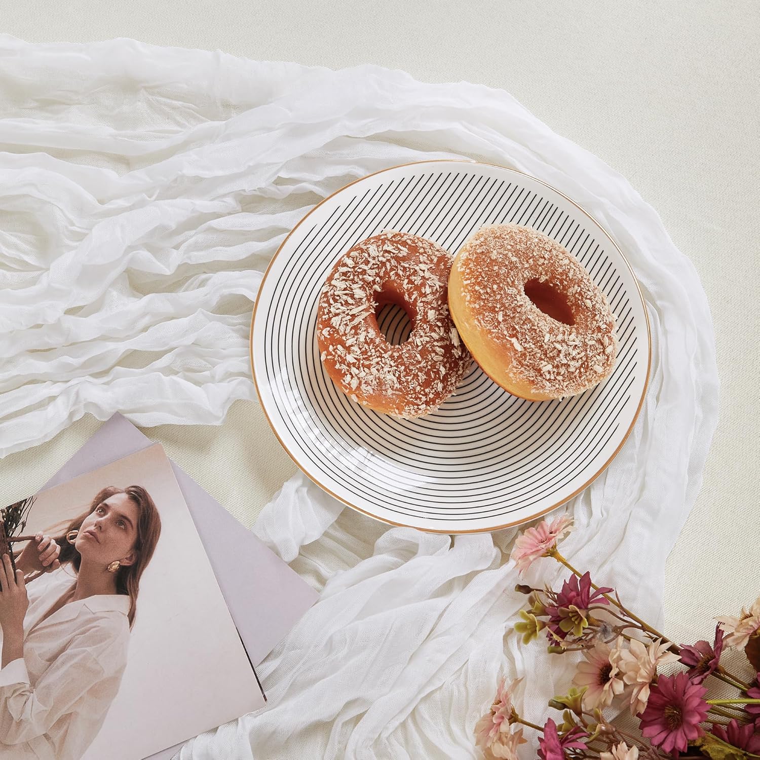 - PACKAGE INCLUDED: You will receive 6 pieces of white cheesecloth table runners. Elegant and beautiful design, exquisite workmanship. Product size: Each boho table runner is 35 x 120 inches. Enough to cover rectangles and round tables, as well as long tables that are stitched together. It can even be used to belt chairs decorate napkins, background curtains. Round or square tables for 8-10 people, perfect for romantic and elegant party events