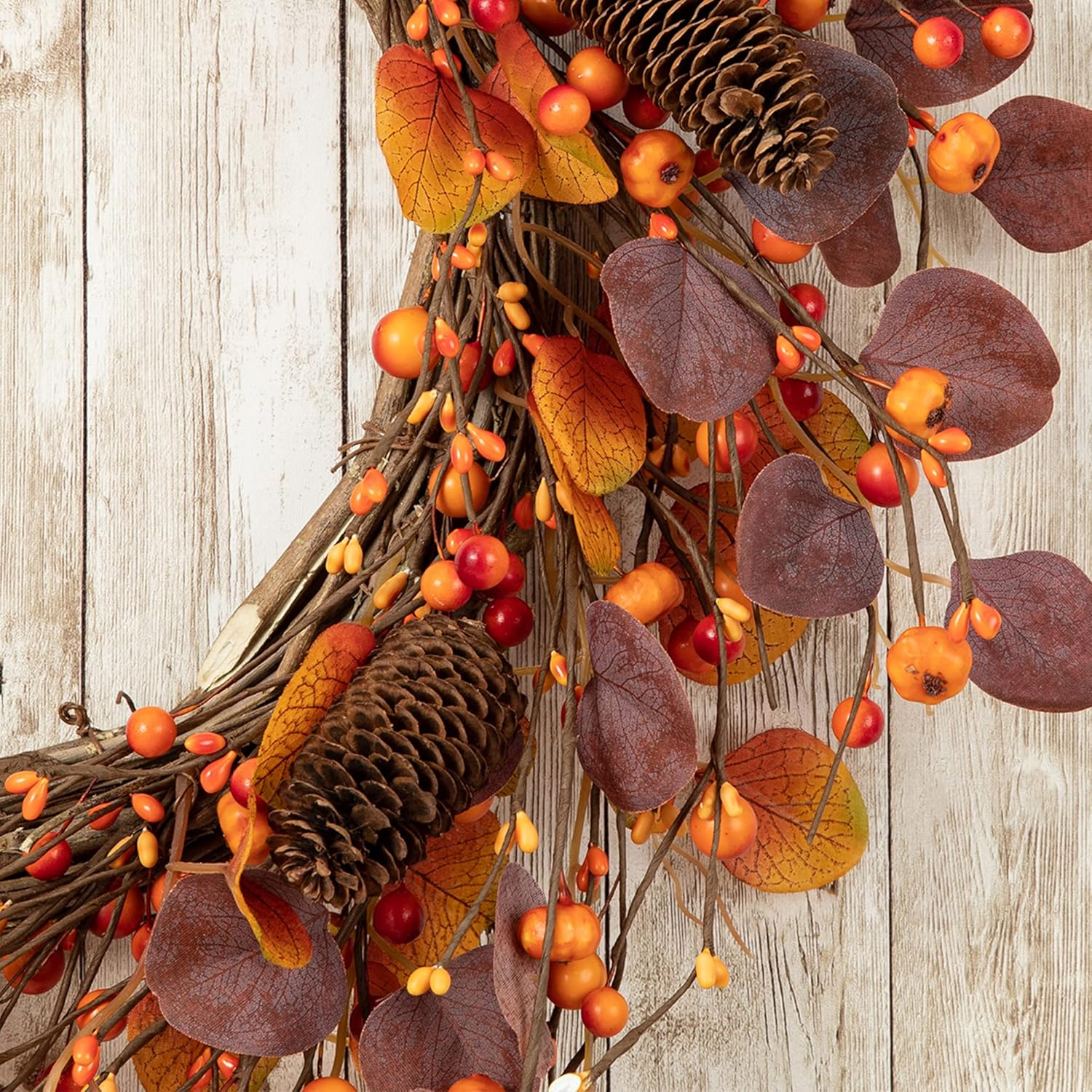 - 【UNIQUE DESIGN】An easy array of color brings this artificial wreath to life bursting with waterproof eucalyptus and berries